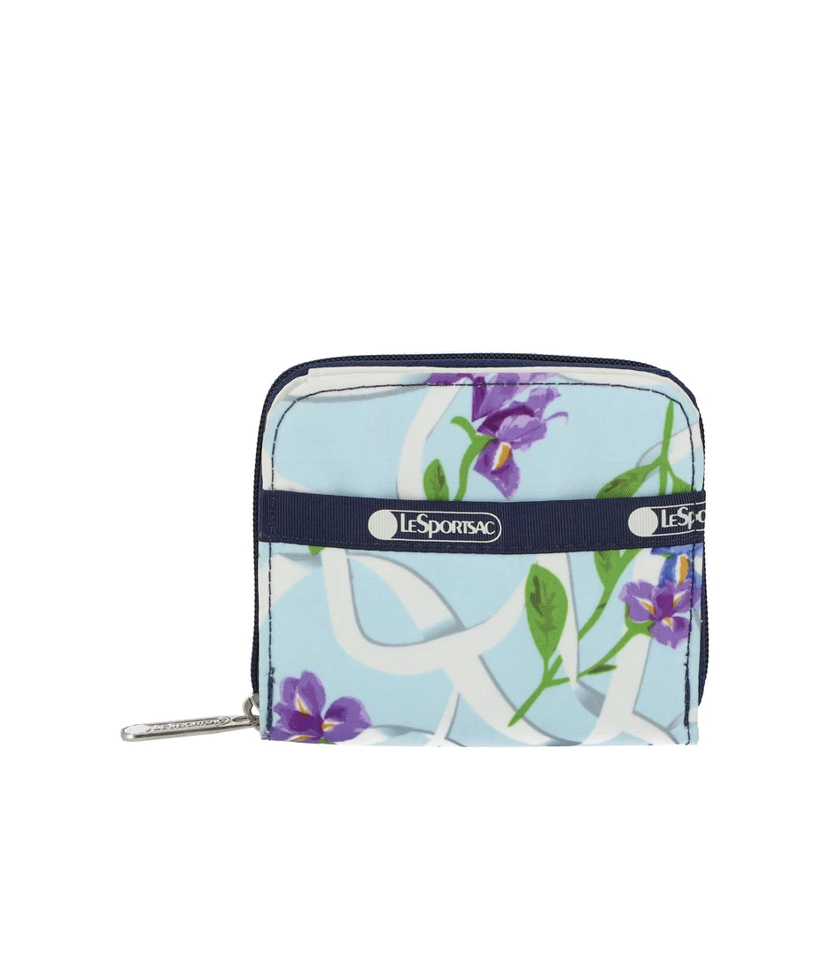 Full-length bill compartment with snap closure, Zip closure coin compartment, Exterior open pocket, 8 interior credit card slots