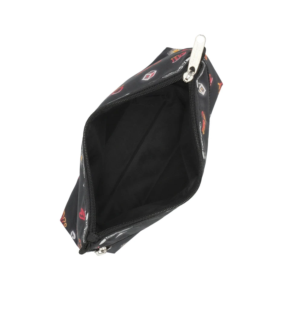 Zipped main closure, Exterior front pocket with zip closure, Side loops