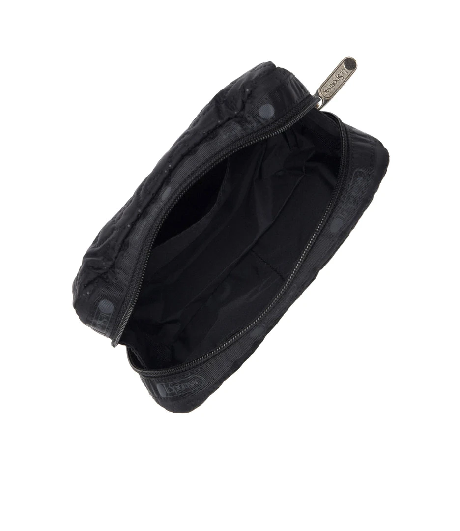 Zipped main closure, Interior back wall open pocket, Two interior front wall open pockets