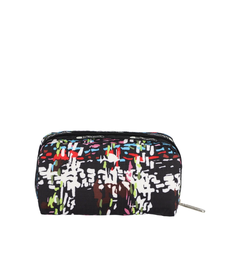 Zipped main closure, Interior back wall open pocket, Two interior front wall open pockets