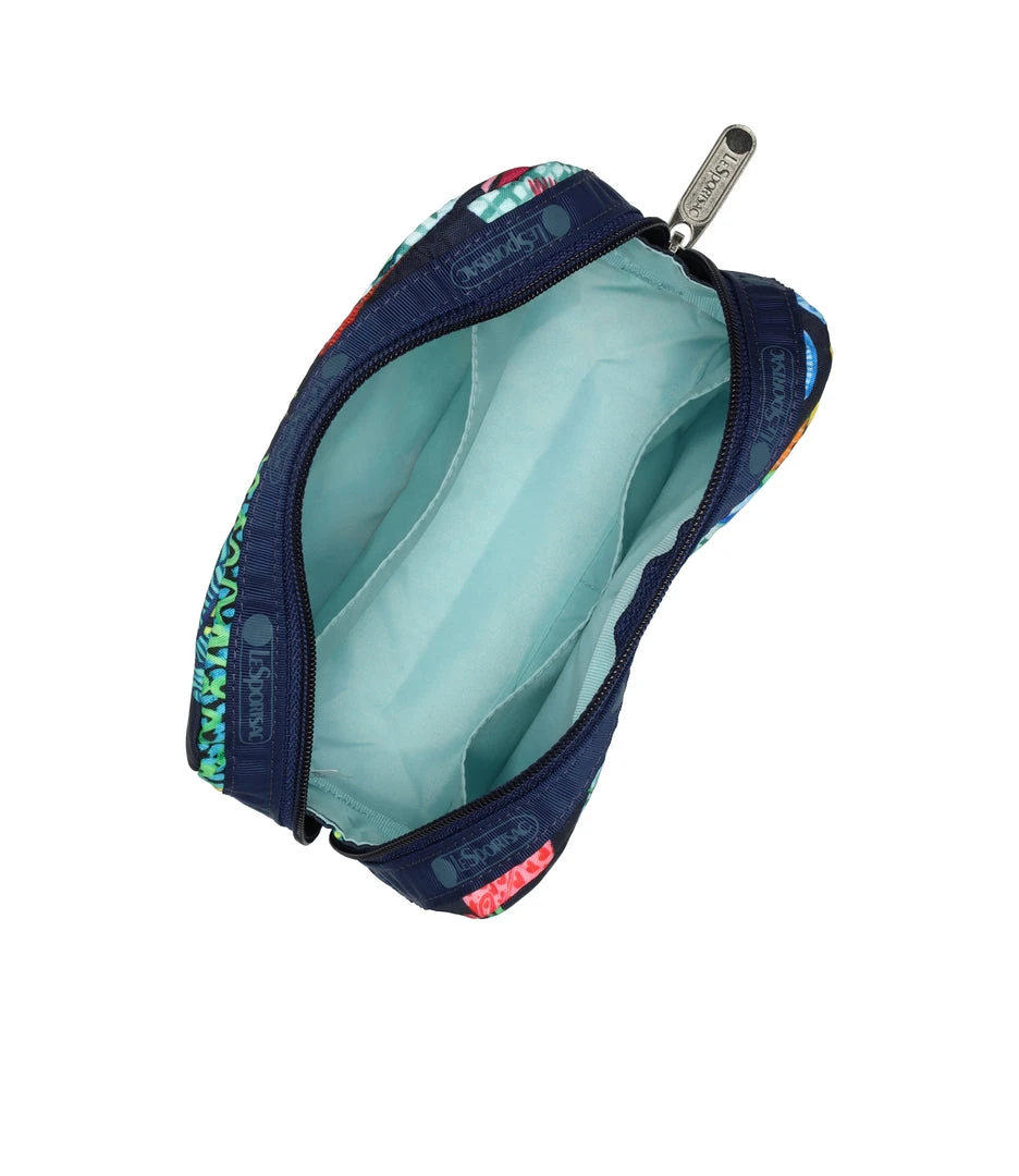 Zipped main closure, Interior back wall open pocket, Two interior front wall open pockets
