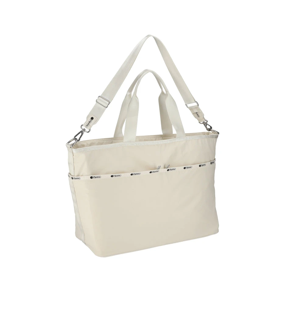 Zip main closure, Two exterior front zip pockets, Two exterior back zip pockets, Three interior front wall open pockets, Two interior back wall open pockets, 1.5in/3.8cm wide pinched top handles(Drop 8.5 in/21.5cm, Length: 20.67in/52.5cm), 1.5in/3.8cm wide adjustable/detachable shoulder strap (Max length: 50 in/127 cm, Min length: 28.54 in/ 72.5 cm)