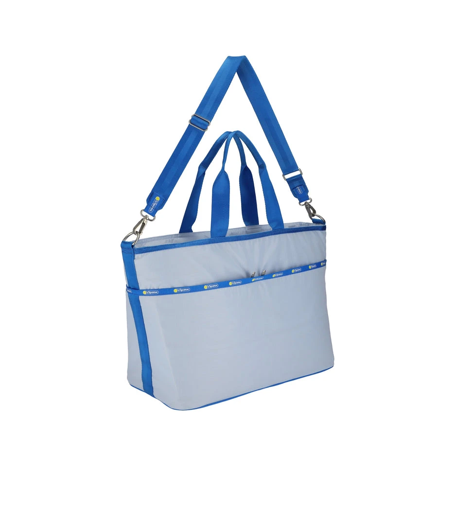 Zip main closure, Two exterior front zip pockets, Two exterior back zip pockets, Three interior front wall open pockets, Two interior back wall open pockets, 1.5in/3.8cm wide pinched top handles(Drop 8.5 in/21.5cm, Length: 20.67in/52.5cm), 1.5in/3.8cm wide adjustable/detachable shoulder strap (Max length: 50 in/127 cm, Min length: 28.54 in/ 72.5 cm)
