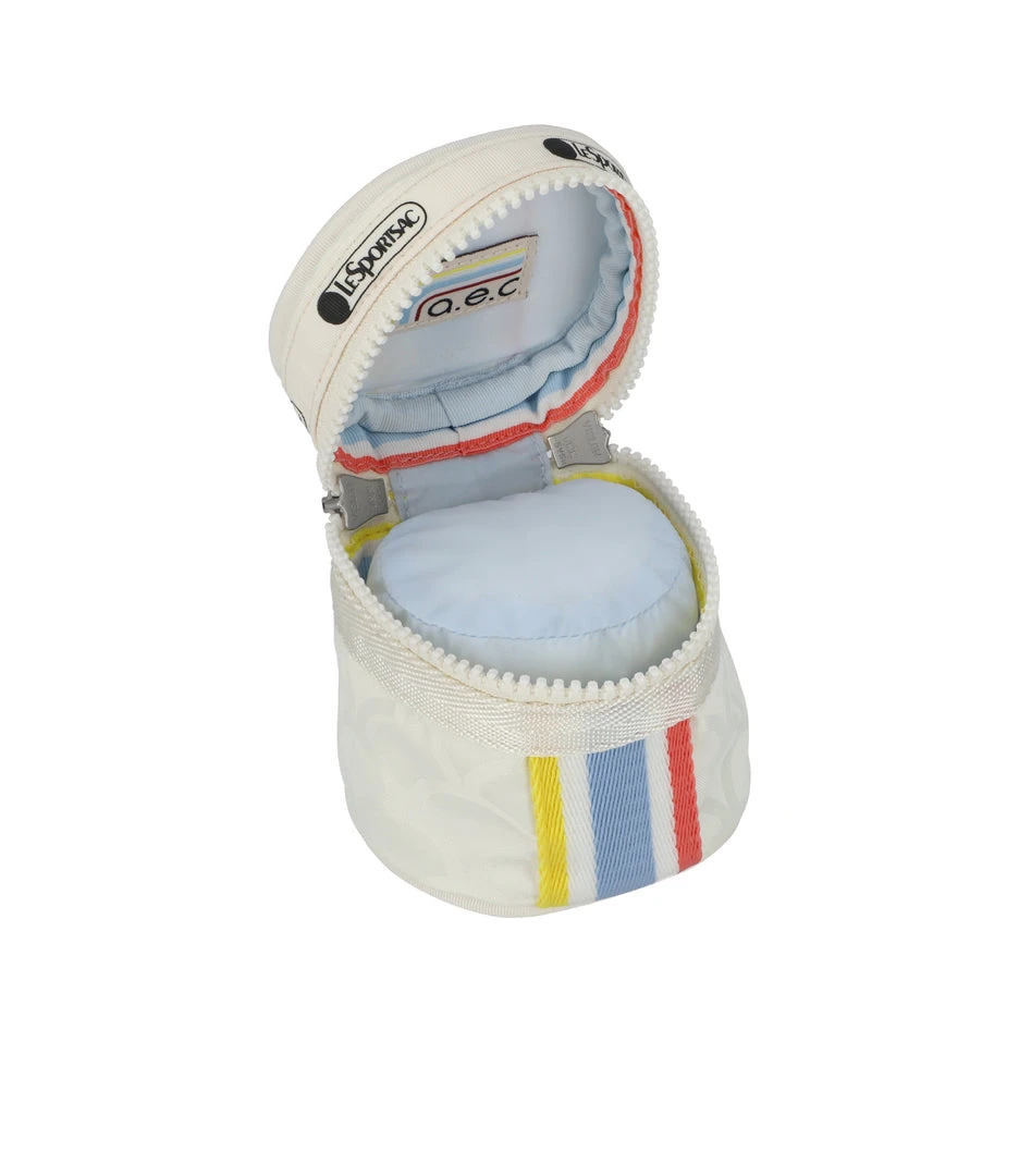 Zip main closure with dual zipper pulls, Interior features a removable plush watch insert (for storing or transporting your favorite wristwatch)