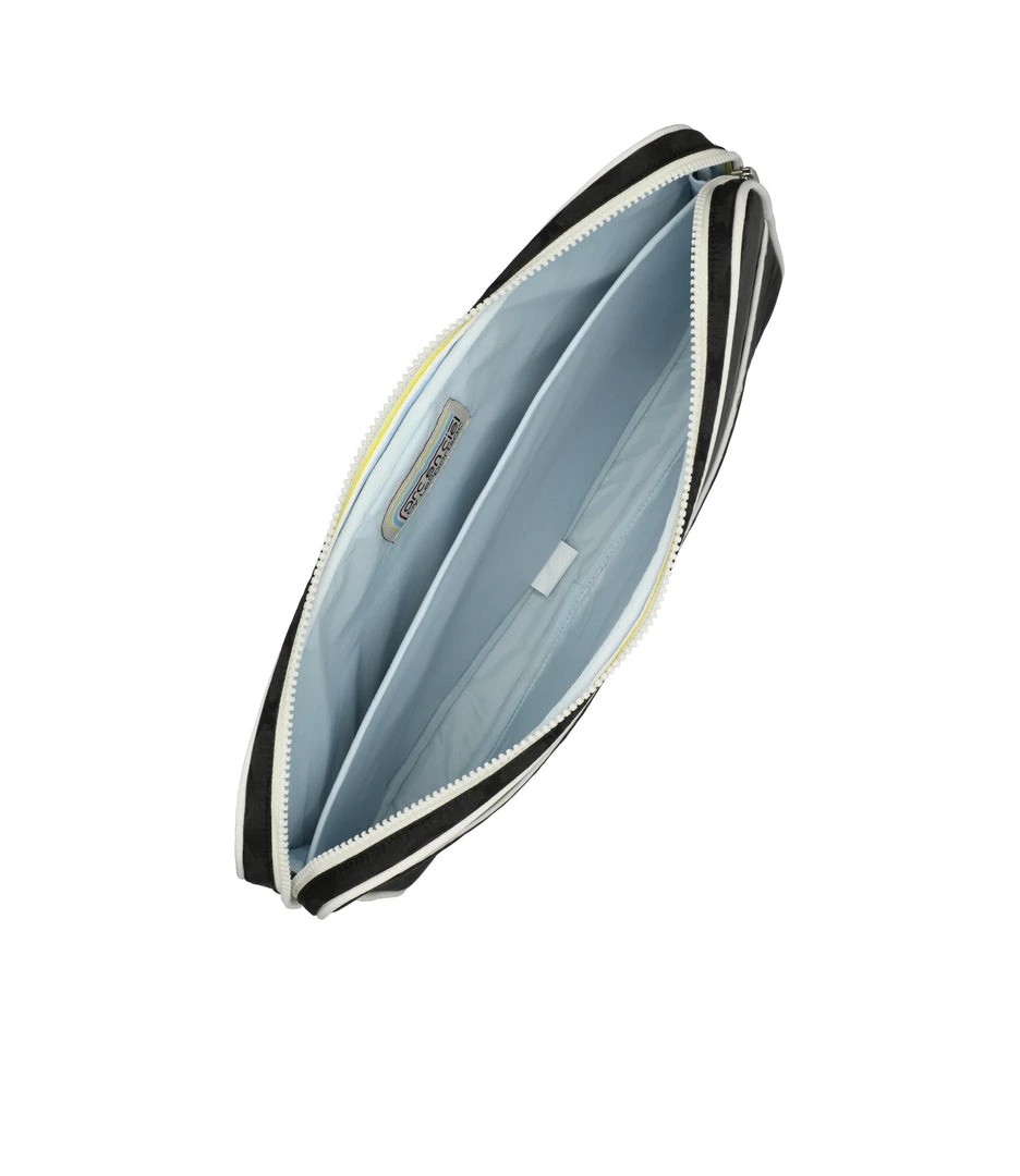 Zip main closure, Exterior front pocket with zip closure, Interior back wall features a padded laptop pocket (fits most 15 inch laptops), Piped edges for added structure