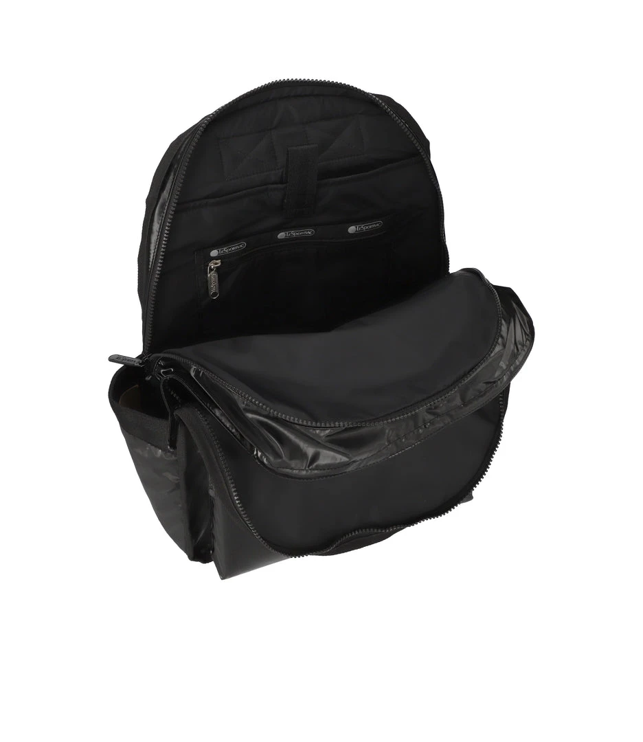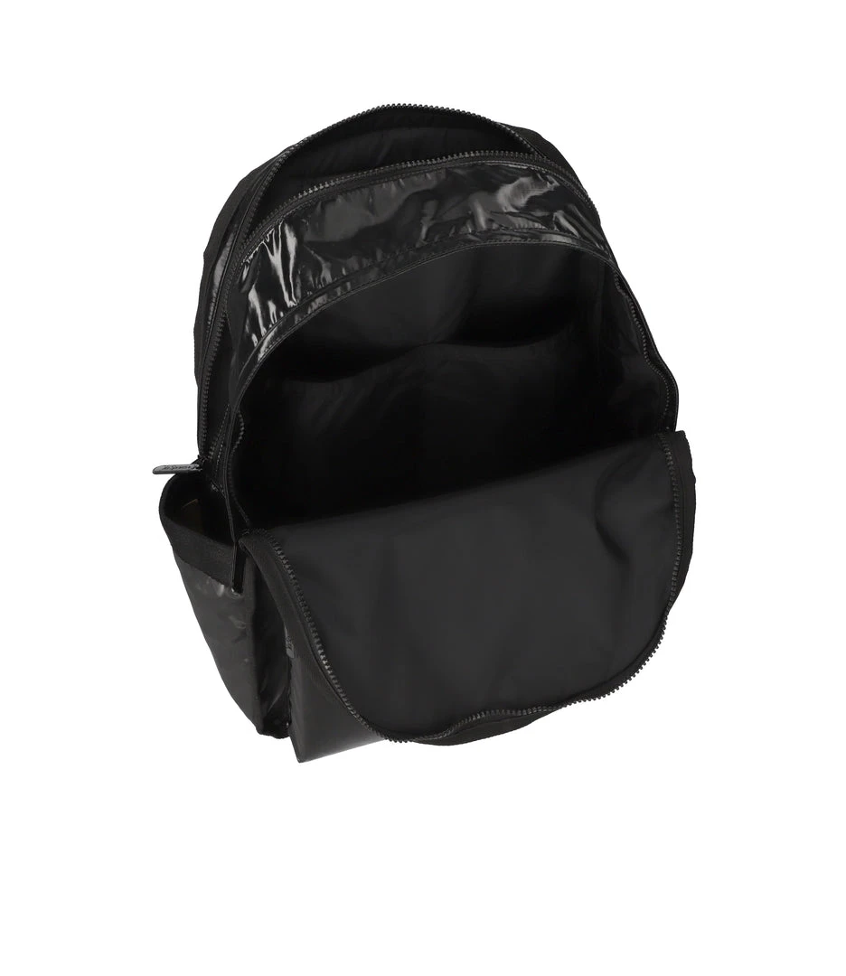 Features two zip closure compartments with dual zipper pulls, 1in/2.5cm top loop handle (Drop: 2.2in/5.5cm), Padded shoulder straps (Length: 18.5in/47cm), Exterior front zip closure pocket, Exterior back panel features a zip closure cell phone pocket on the side, Two exterior side open top pockets, Interior of front compartment features two open pockets on the interior back wall, Interior of back compartment features a laptop pocket with Velcro tab closure (for 13in laptops) and a combination zip/open pocket (on front of the laptop pocket)