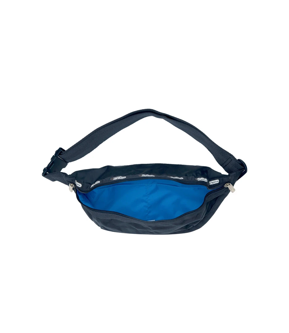 Zip closure front main compartment with dual zipper pulls, Exterior back pocket with zip closure and 3 card pockets on the interior back wall, Interior of front main compartment has two open pockets on the back wall, 1.5 in/3.8cm wide adjustable waist belt (Includes body and buckles Max length: 48.2 in/122.5cm, Min length: 33.9 in/86 cm)