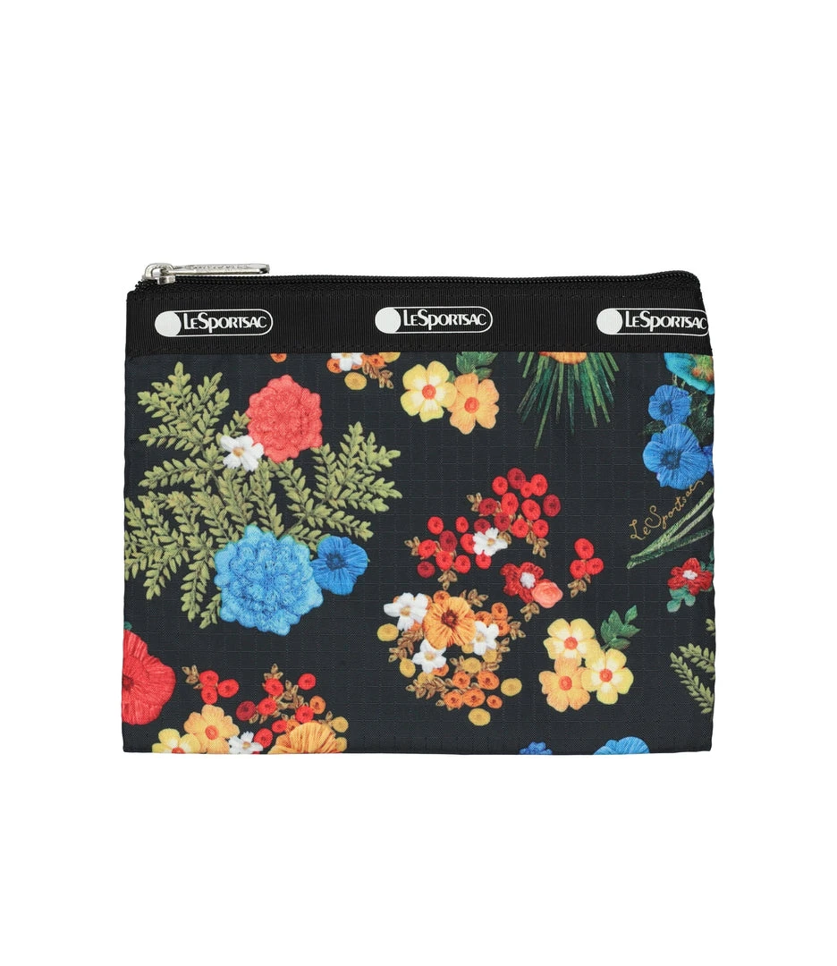 Zipped main closure, Exterior front pocket with zipped closure, Exterior back pocket with zipped closure, Interior back wall hanging zipper pocket, Adjustable shoulder strap (Max. 50in / 127cm), Includes matching pouch with zipped closure