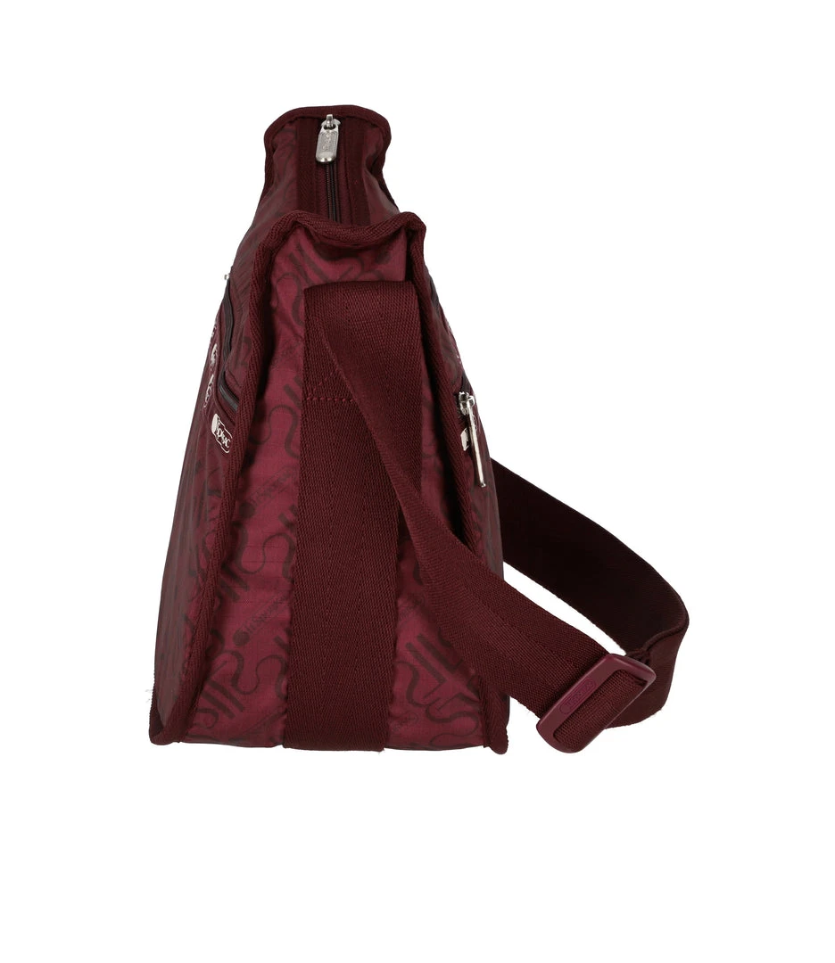 Zipped main closure, Exterior front pocket with zipped closure, Exterior back pocket with zipped closure, Interior back wall hanging zipper pocket, Adjustable shoulder strap (Max. 50in / 127cm), Includes matching pouch with zipped closure