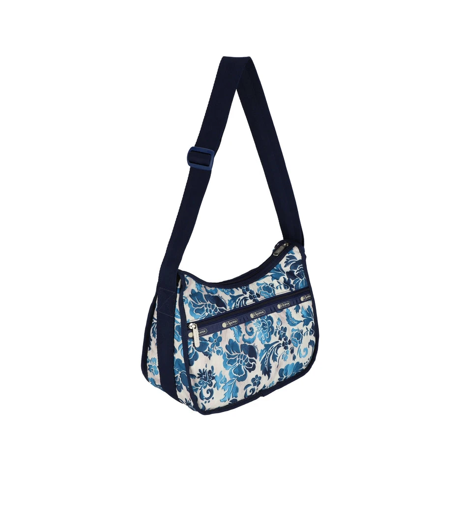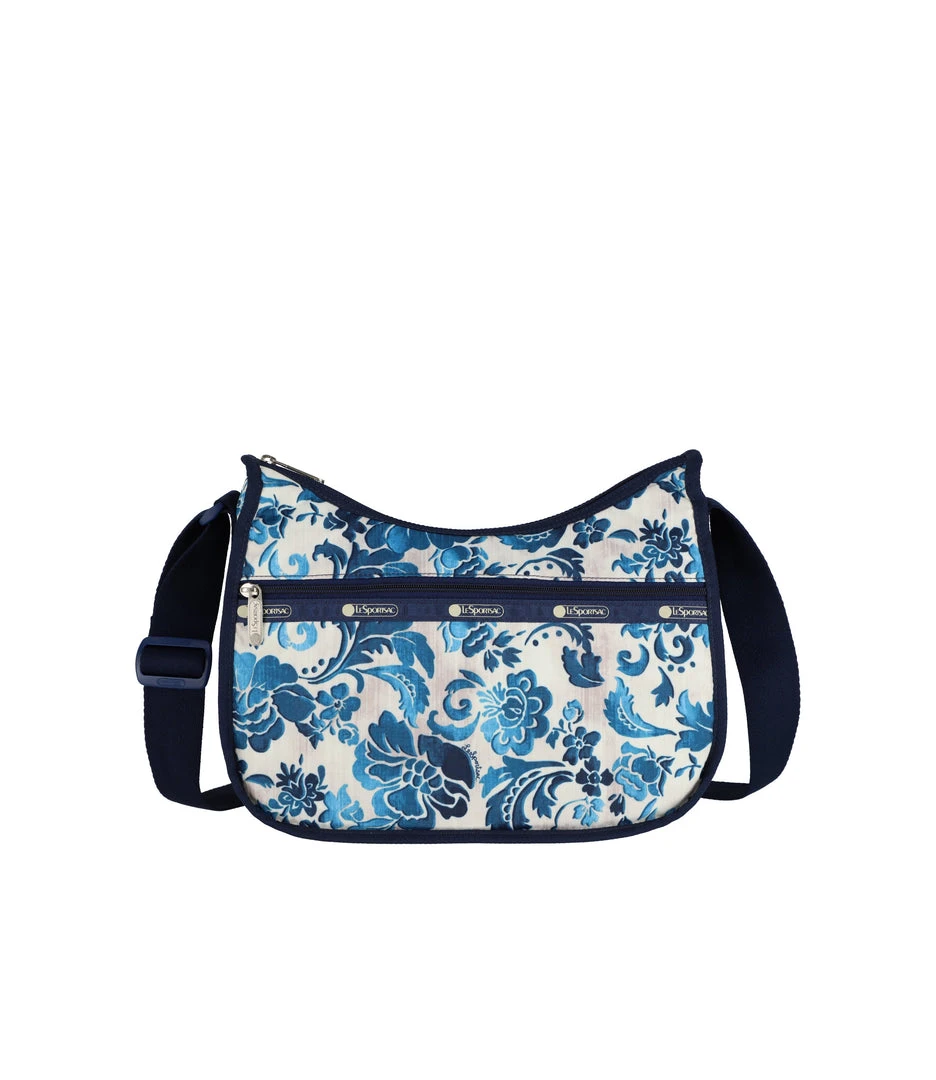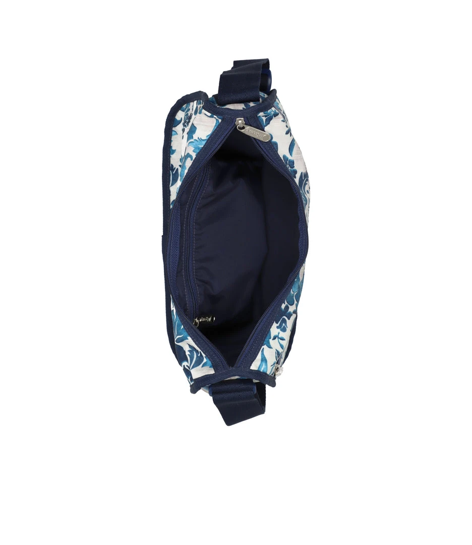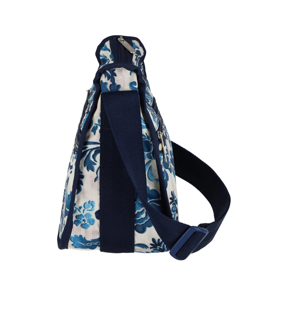Zipped main closure, Exterior front pocket with zipped closure, Exterior back pocket with zipped closure, Interior back wall hanging zipper pocket, Adjustable shoulder strap (Max. 50in / 127cm), Includes matching pouch with zipped closure