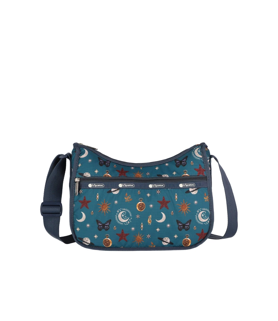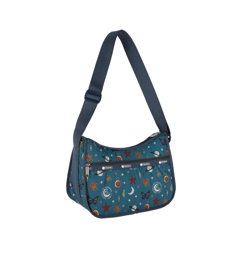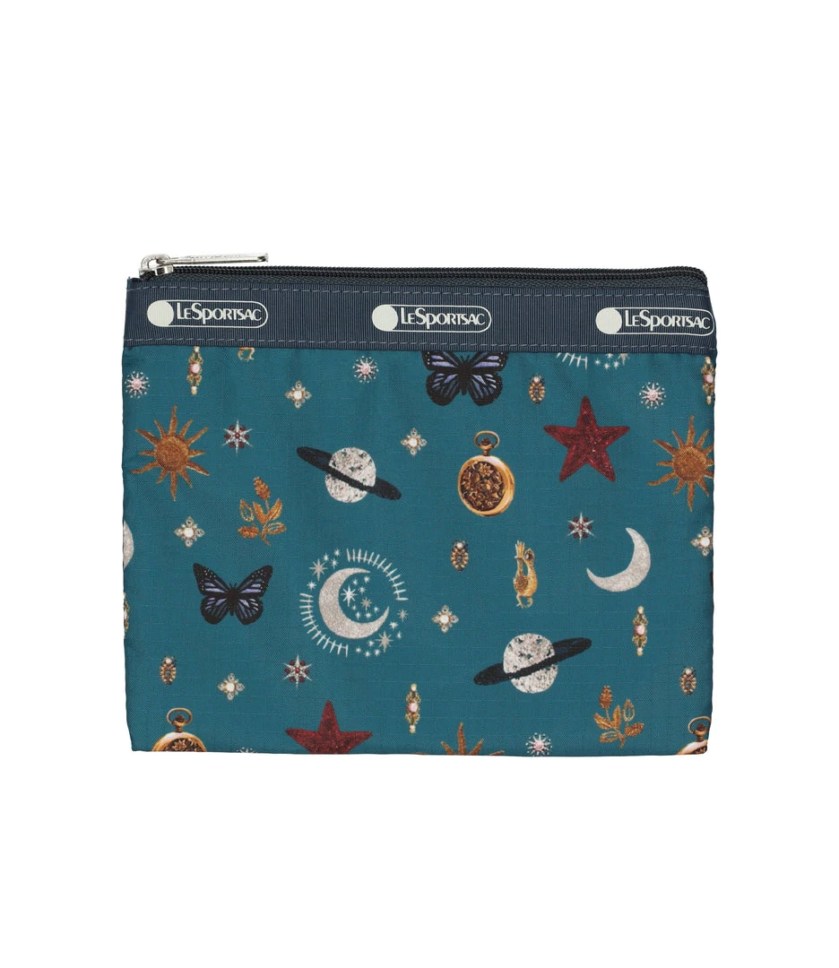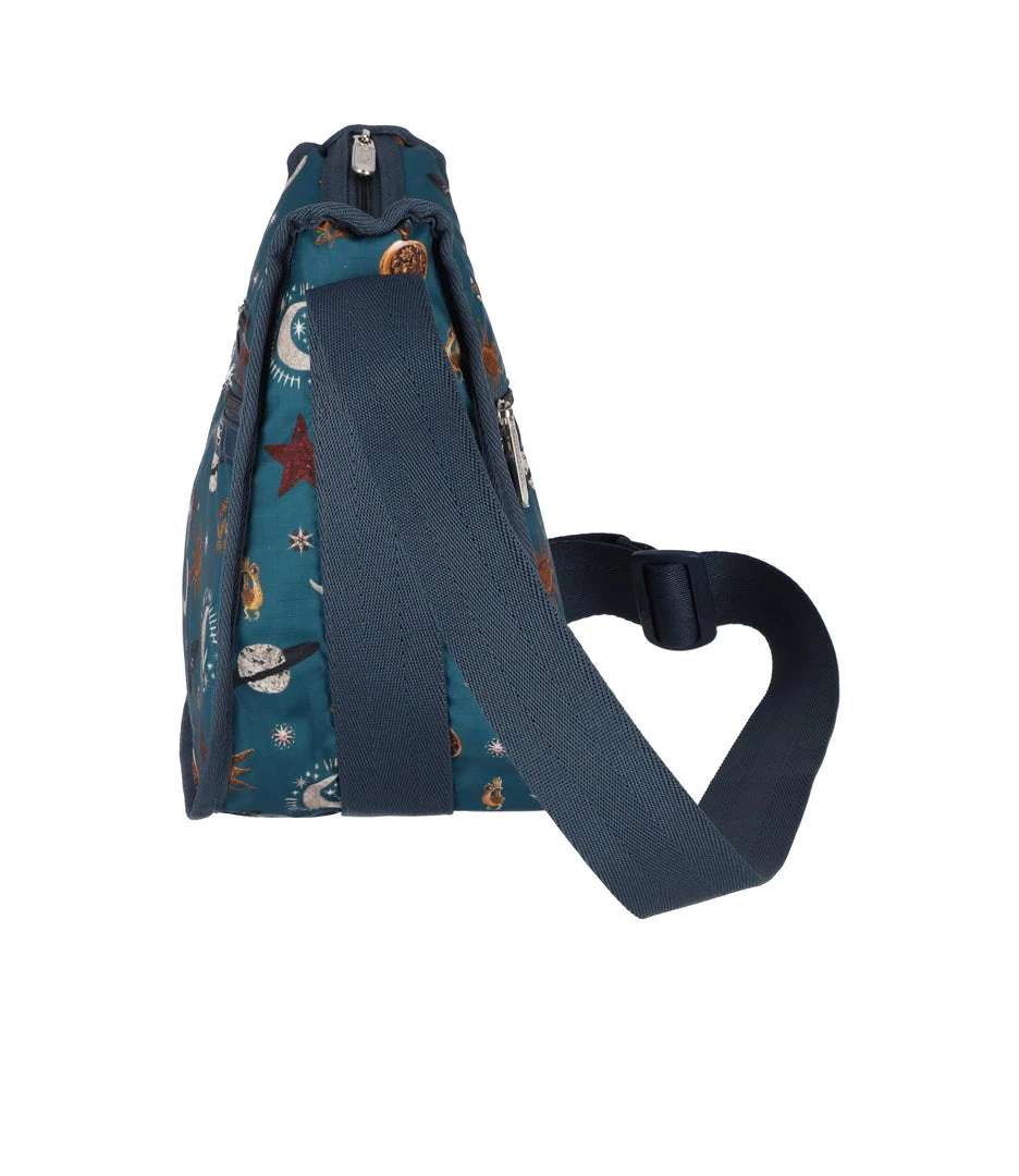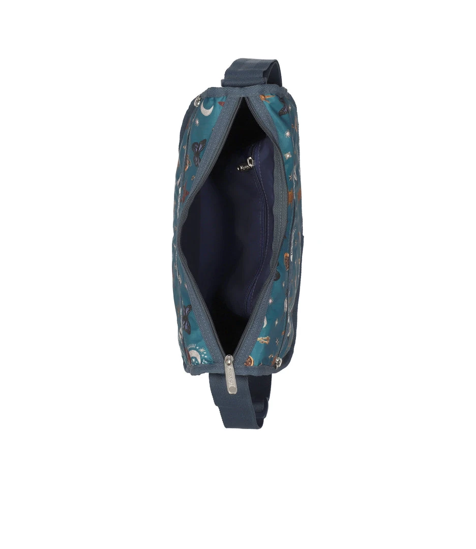 Zipped main closure, Exterior front pocket with zipped closure, Exterior back pocket with zipped closure, Interior back wall hanging zipper pocket, Adjustable shoulder strap (Max. 50in / 127cm), Includes matching pouch with zipped closure9 x 12 x 5.25 in, 22.86 x 30.48 x 13.34 cm