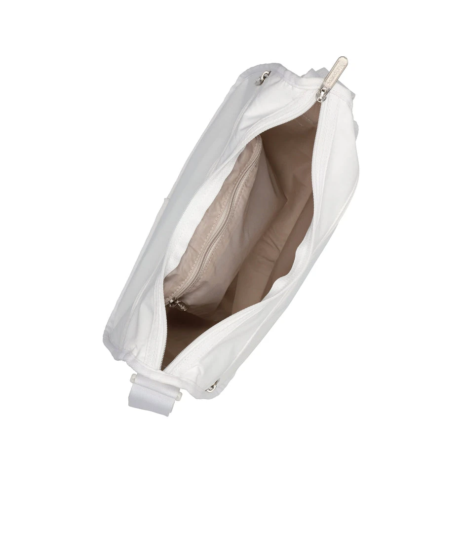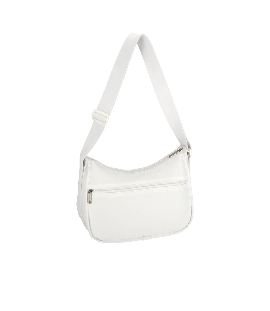 Zipped main closure, Exterior front pocket with zipped closure, Exterior back pocket with zipped closure, Interior back wall hanging zipper pocket, Adjustable shoulder strap (Max. 50in / 127cm), Includes matching pouch with zipped closure