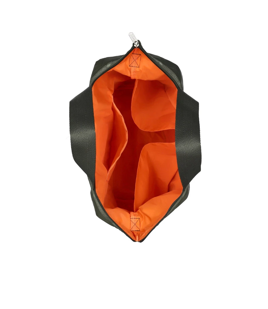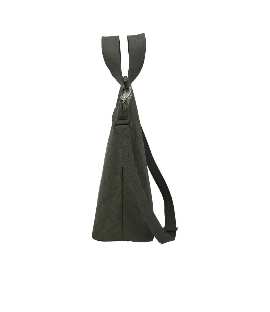 Zip top main closure, 5in (12.7cm) Top handle drop, Adjustable crossbody strap (1.5in/3.81cm wide with a maximum extension of 52in/132cm), Exterior back panel pocket with zip closure, Two interior front wall open pockets, Interior back wall open pocket12.5H x 15.5W (across top)/12.25W (across bottom) x 5D in, 31.75H x 39.37W (across top)/31.12W (across bottom) x 12.7D cm
