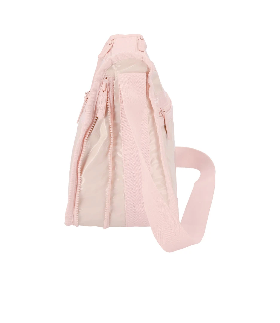 Two main compartments with zipped closures, Zip out expandable front main compartment, Exterior back pocket with zipped closure, Two exterior front pockets with zipped closures, Adjustable shoulder strap (Max. 52in/132cm), Includes matching pouch with zipped closure