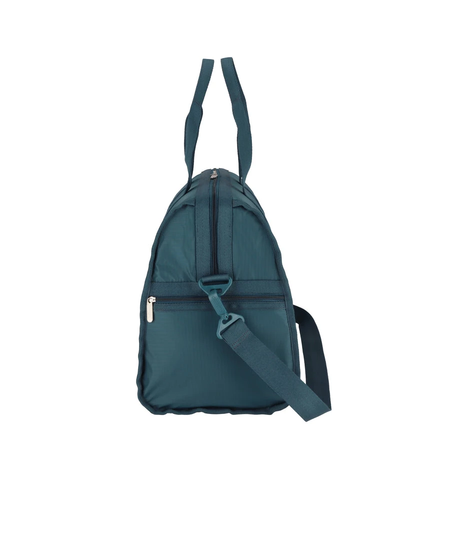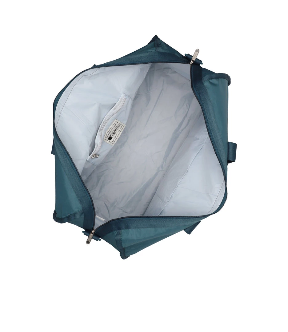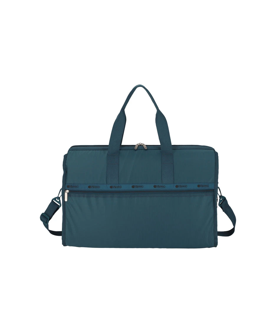 Zip main closure with dual zipper pulls, 8.5in (21.59cm) Top handle drop, 1.5in (3.81cm) Wide adjustable/detachable crossbody strap (Max. 42in/106.68cm), Exterior front panel zipper pocket, Exterior back panel zip closure pocket with dual zipper pulls and a bottom zipper to convert pocket into a sleeve (to slide over rolling luggage handles), Two exterior side pockets with zip closures, Three interior front wall open pockets, Interior back wall combination zip/open pocket