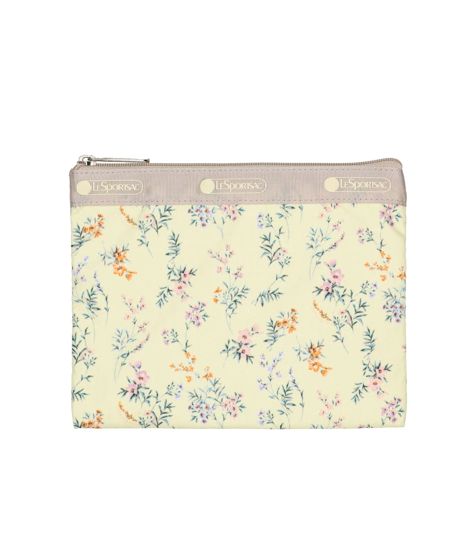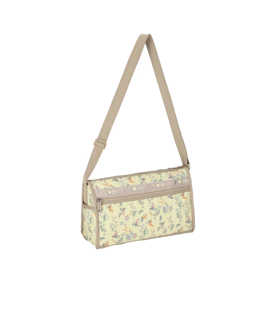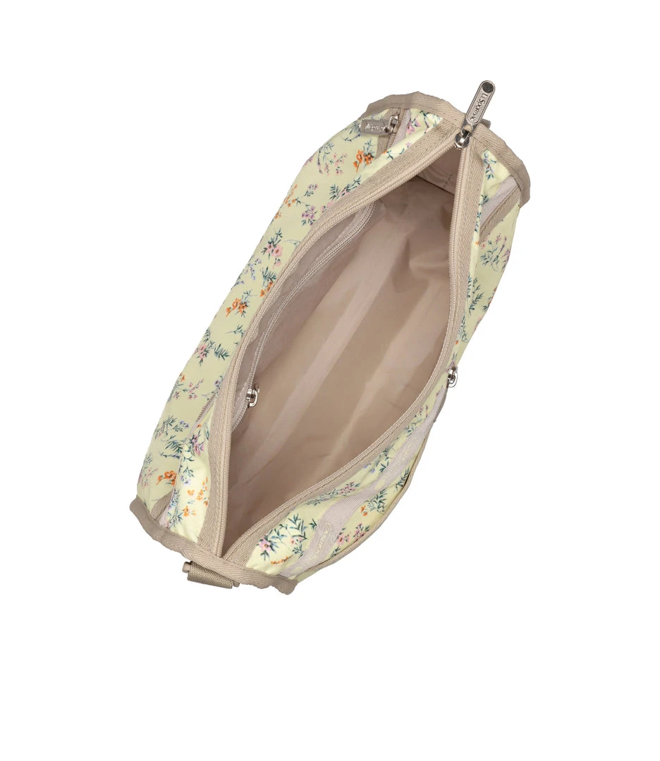 Zipped main closure, Exterior front open pocket, Exterior front pocket with zipped closure, Exterior back pocket with zipped closure, Two exterior open side pockets, Adjustable shoulder strap (Max. 52in/132cm), Interior pocket with zipped closure, Includes matching pouch with zipped closure