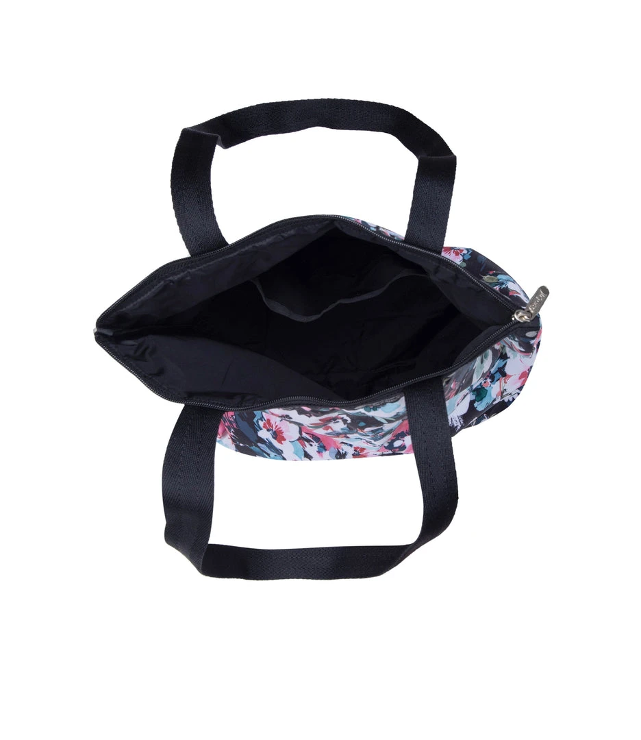 Zipped main closure, 1in (2.5cm) wide top handles (Length: 24.6 in/62.5 cm), Interior back wall combination zip/open pocket