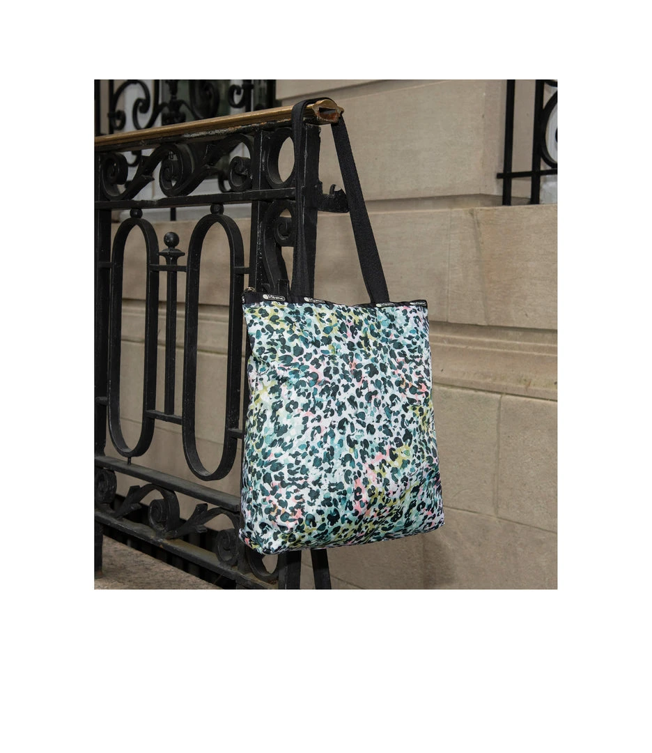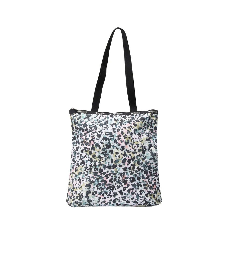Zipped main closure, 1in (2.5cm) wide top handles (Length: 24.6 in/62.5 cm), Interior back wall combination zip/open pocket