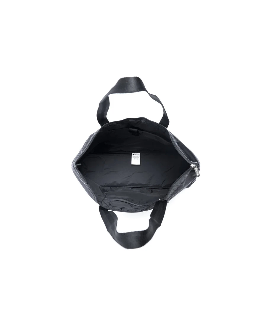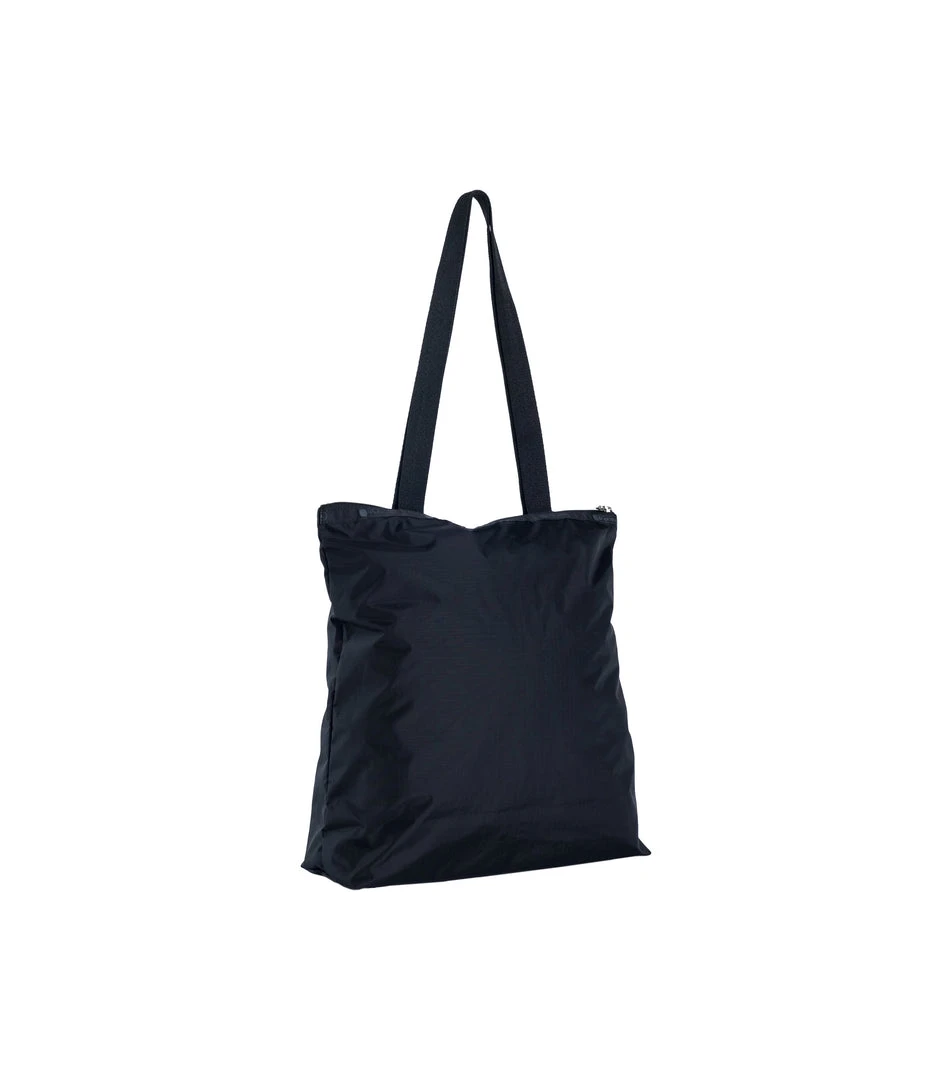 Zipped main closure, 1in (2.5cm) wide top handles (Length: 24.6 in/62.5 cm), Interior back wall combination zip/open pocket