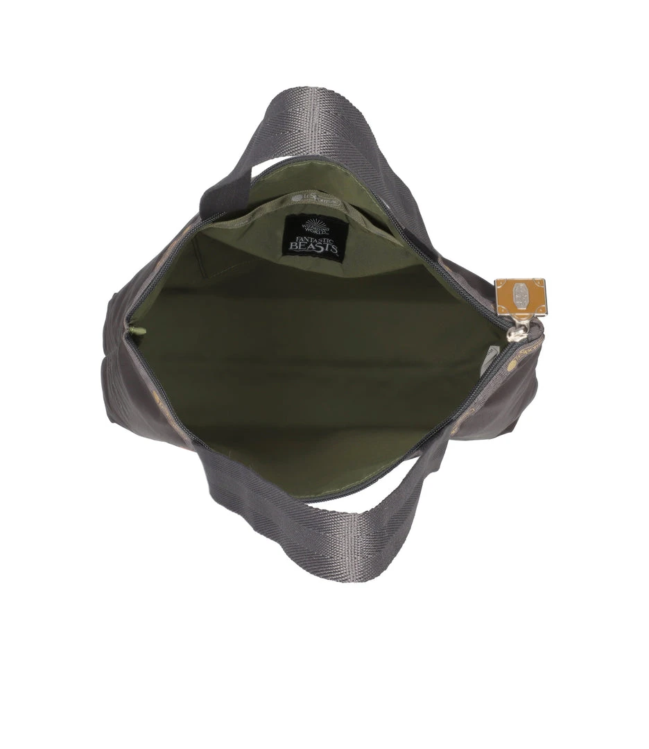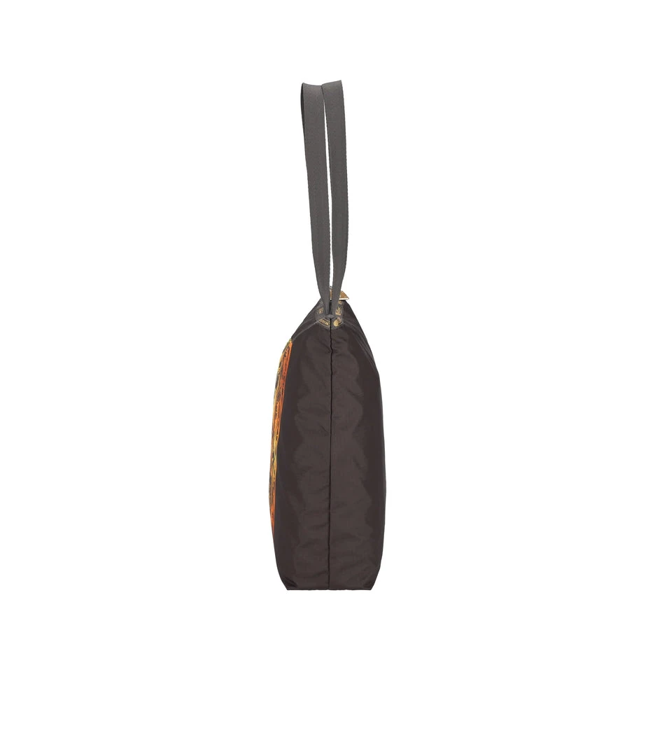 Zipped main closure, 1in (2.5cm) wide top handles (Length: 24.6 in/62.5 cm), Interior back wall combination zip/open pocket