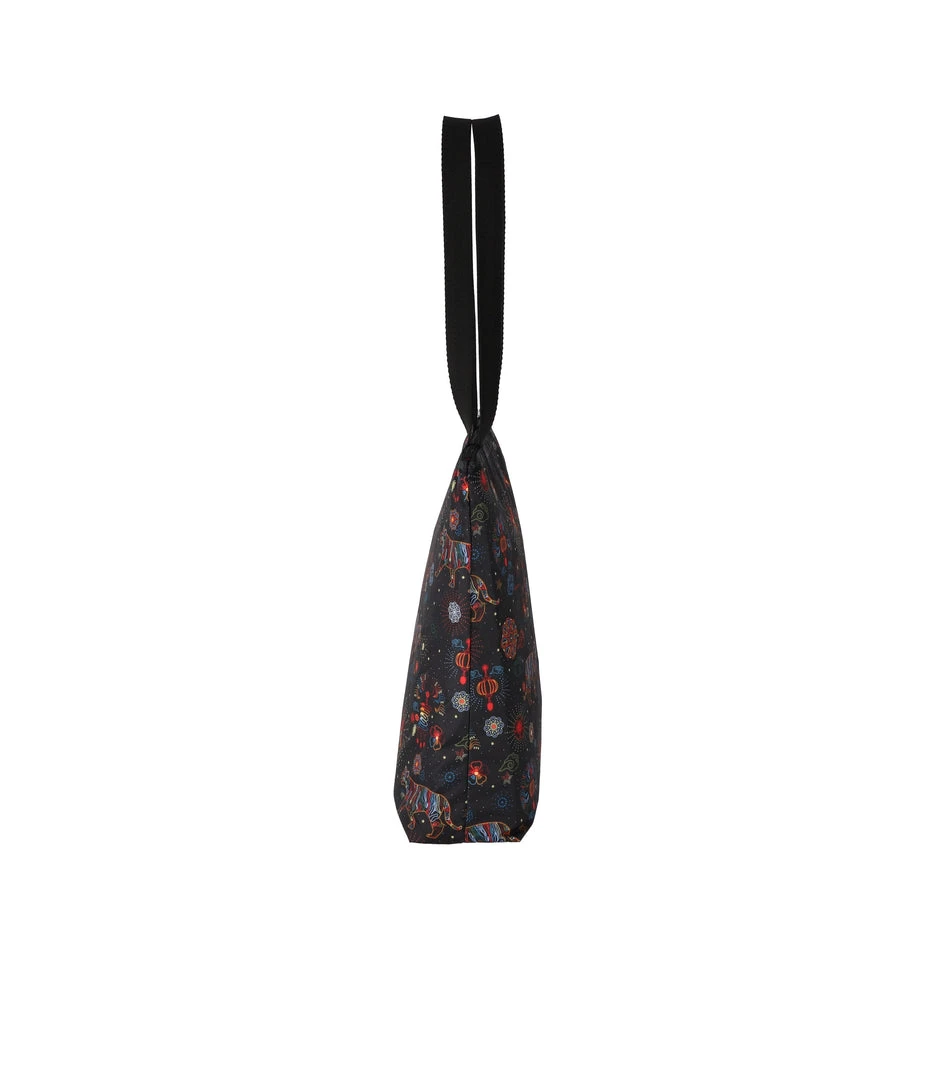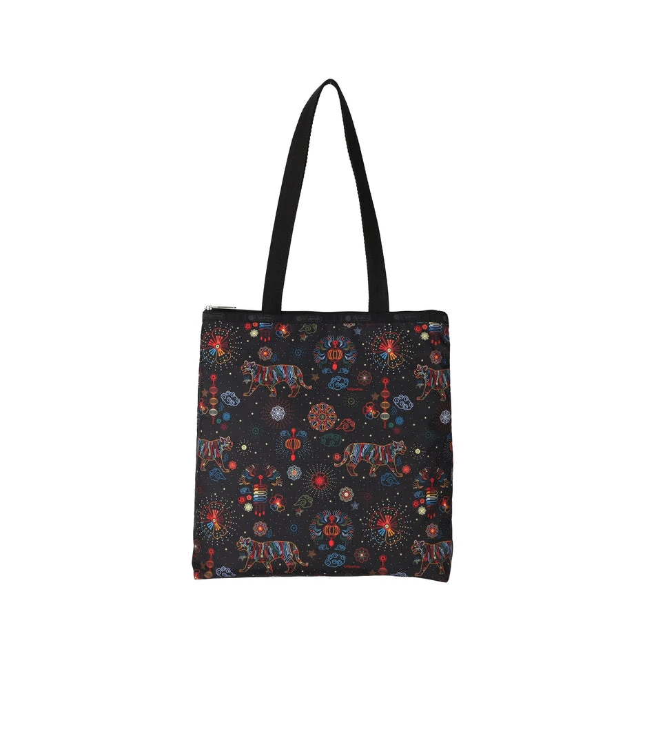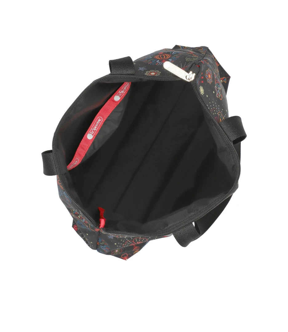 Zipped main closure, 1in (2.5cm) wide top handles (Length: 24.6 in/62.5 cm), Interior back wall combination zip/open pocket