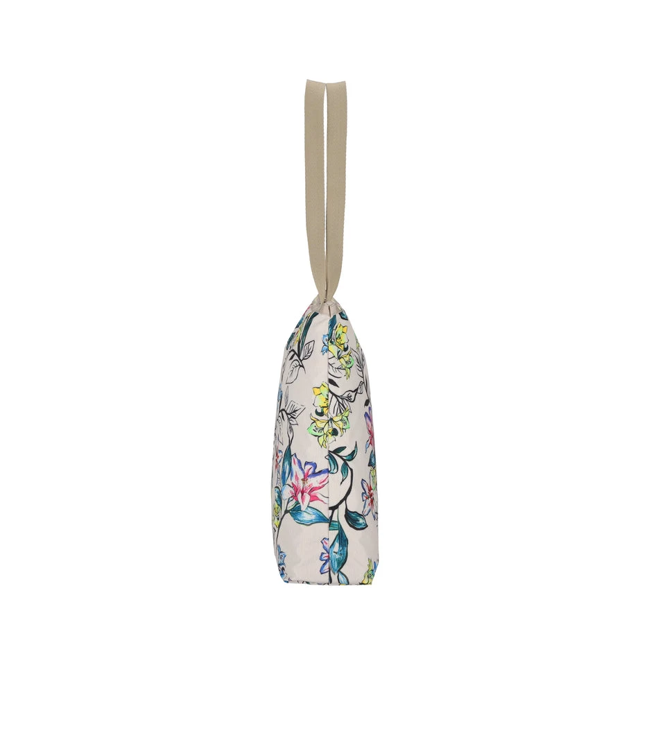 Zipped main closure, 1in (2.5cm) wide top handles (Length: 24.6 in/62.5 cm), Interior back wall combination zip/open pocket