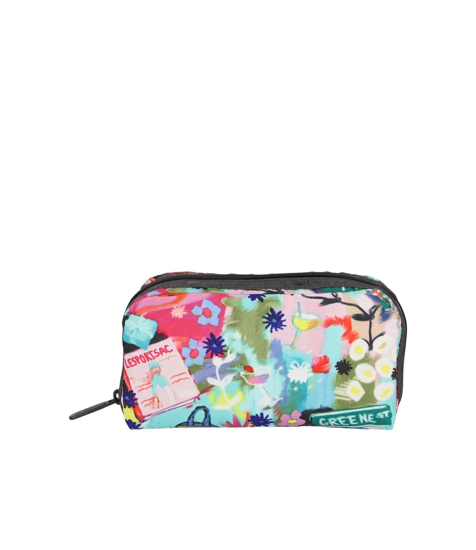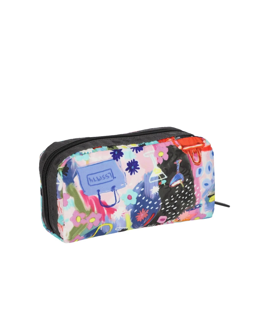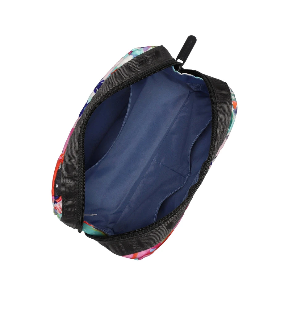 Zipped main closure, Interior back wall open pocket, Two interior front wall open pockets