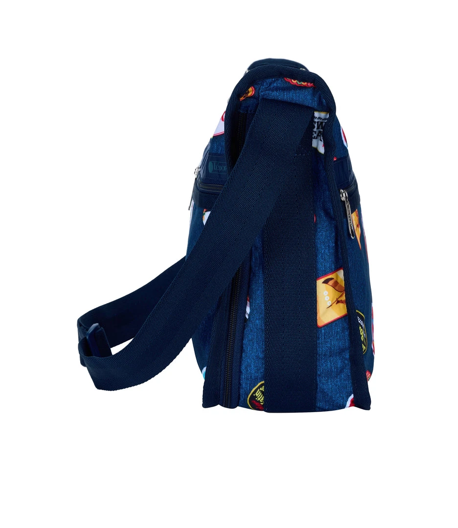 Two main compartments with zipped closures, Zip out expandable front main compartment, Exterior back pocket with zipped closure, Two exterior front pockets with zipped closures, Adjustable shoulder strap (Max. 52in/132cm), Includes matching pouch with zipped closure