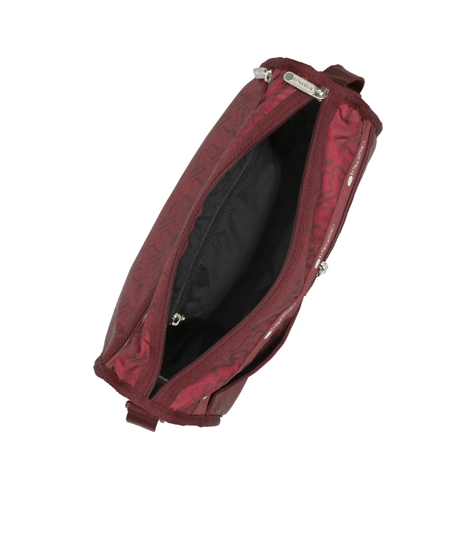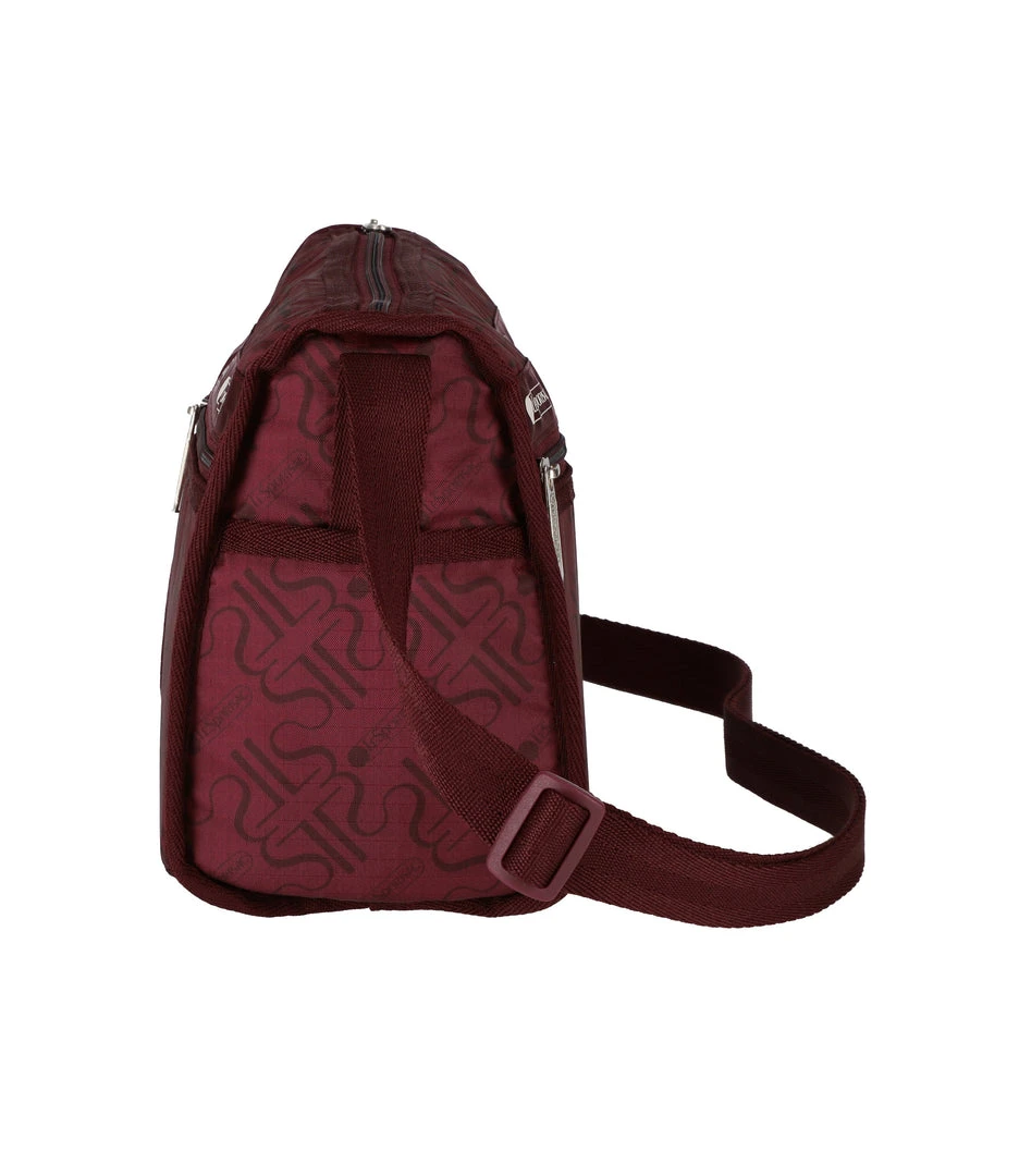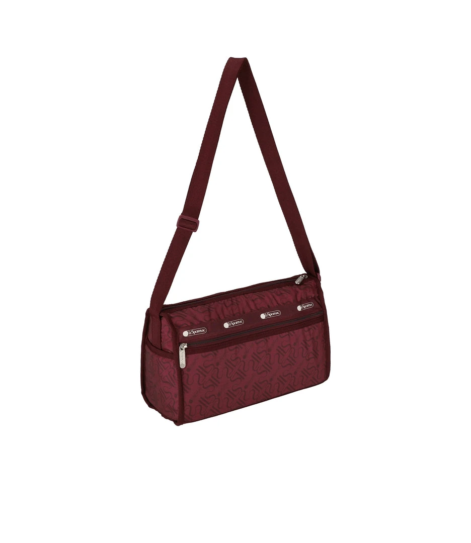 Zipped main closure, Exterior front open pocket, Exterior front pocket with zipped closure, Exterior back pocket with zipped closure, Two exterior open side pockets, Adjustable shoulder strap (Max. 52in/132cm), Interior pocket with zipped closure, Includes matching pouch with zipped closure