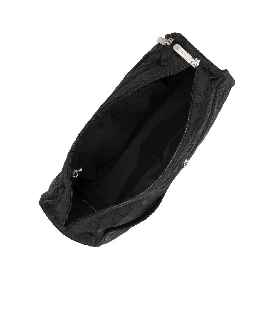 Zipped main closure, Exterior front open pocket, Exterior front pocket with zipped closure, Exterior back pocket with zipped closure, Two exterior open side pockets, Adjustable shoulder strap (Max. 52in/132cm), Interior pocket with zipped closure, Includes matching pouch with zipped closure