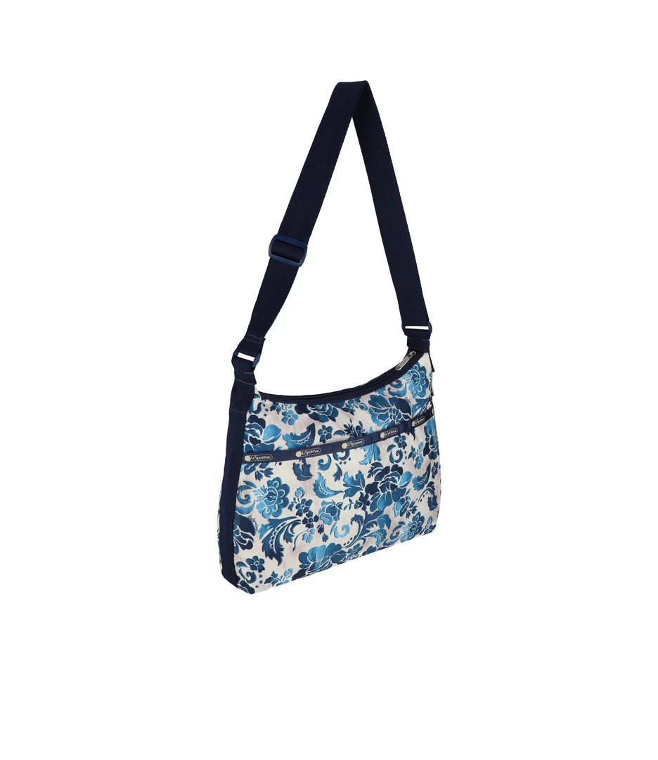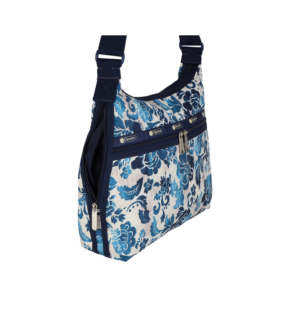 Zip main closure, Exterior front pocket with dual zip closure, Exterior back open pocket with magnetic snap closure, Two interior front wall open pockets, Interior back combination zip/open pocket with key loop on top of large open pocket, 1.5 in/3.8cm wide adjustable shoulder strap (Max length: 26.2 in/66.5 cm, Min length: 16.7 in/ 42.5 cm)
