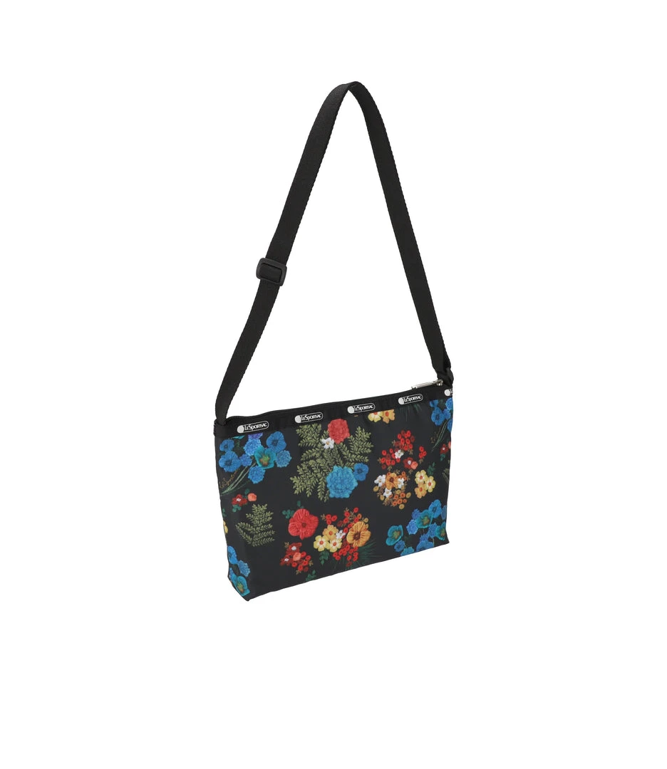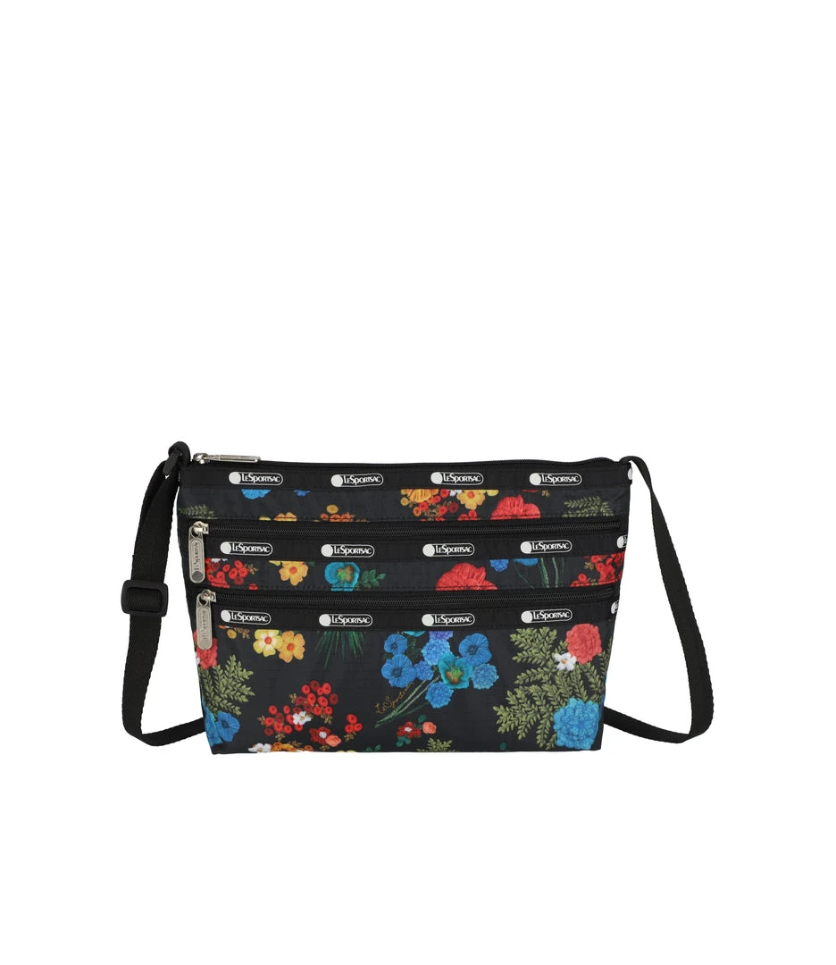 Zip main closure, Two exterior front pockets with zip closures, Adjustable crossbody strap (Max. 50.25in / 127.64cm), Two interior back wall open pockets