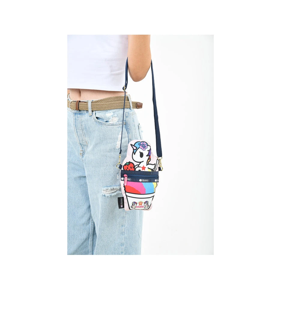 Main compartment is accessible through a horizontal zipper on the back panel, Adjustable/detachable crossbody strap (Min Length:28in/71.1cm, Max Length: 52in/132.1cm) with gold-tone hardware