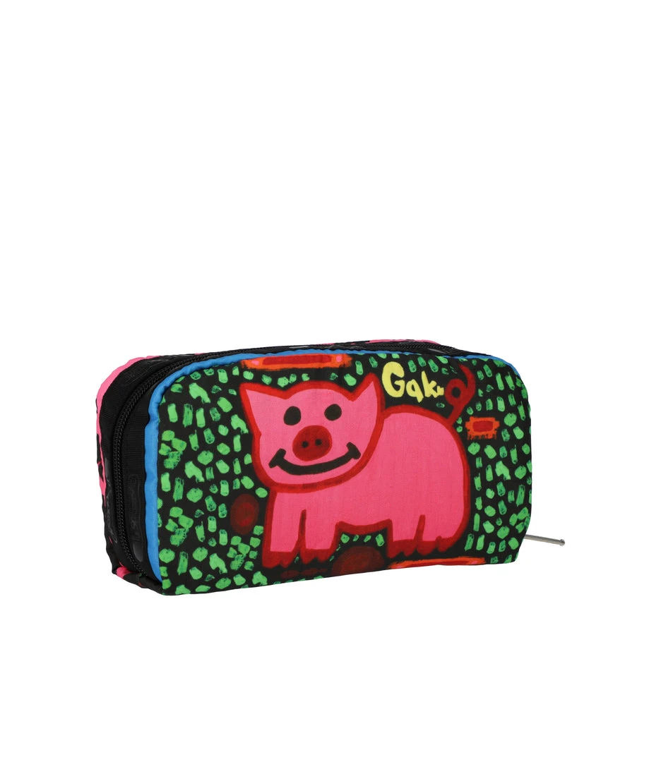Zipped main closure, Interior back wall open pocket, Two interior front wall open pockets