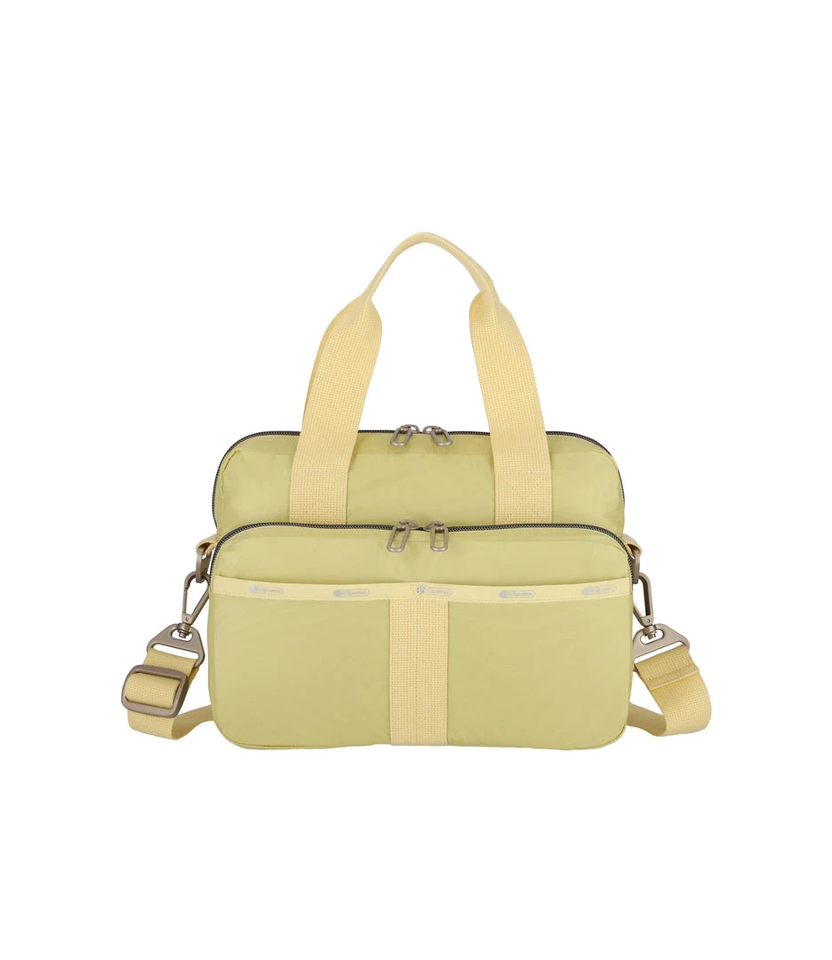 Zip main closure with dual zipper pulls, Removable/adjustable crossbody strap (Max. 52in/132cm), 6in (15cm) Pinched short handle drop, Exterior front zip compartment with two exterior front open pockets, Exterior back open pocket with magnetic snap closure, Interior back wall zip closure pocket