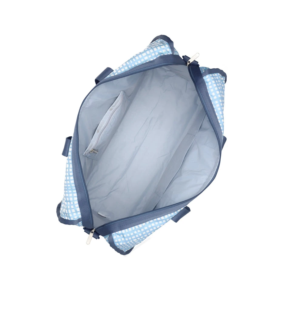 Zip main closure with dual zipper pulls, 8.5in (21.59cm) Top handle drop, 1.5in (3.81cm) Wide adjustable/detachable crossbody strap (Max. 42in/106.68cm), Exterior front panel zipper pocket, Exterior back panel zip closure pocket with dual zipper pulls and a bottom zipper to convert pocket into a sleeve (to slide over rolling luggage handles), Two exterior side pockets with zip closures, Three interior front wall open pockets, Interior back wall combination zip/open pocket