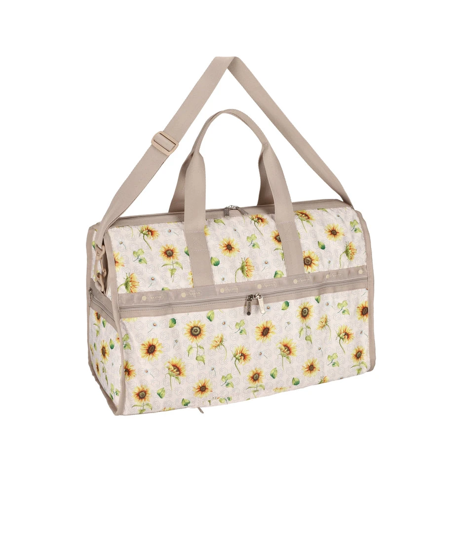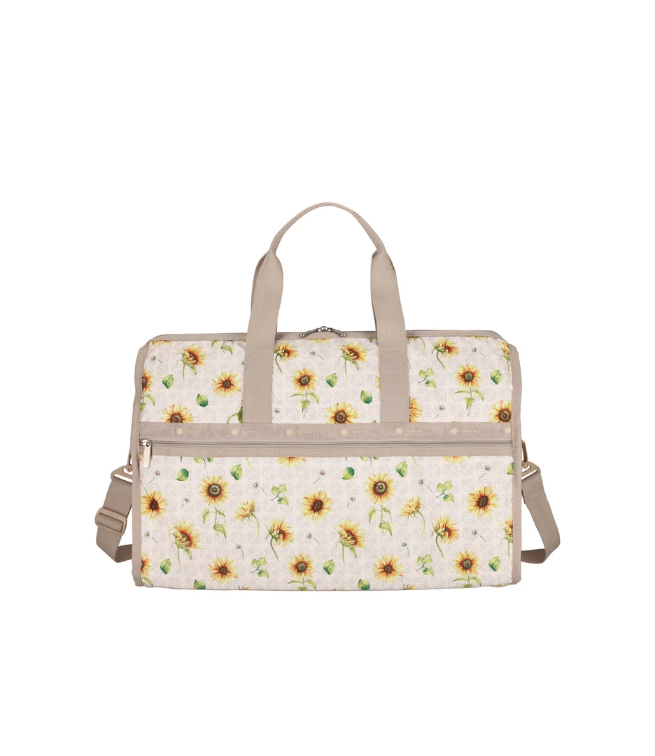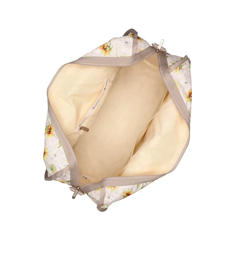Zip main closure with dual zipper pulls, 8.5in (21.59cm) Top handle drop, 1.5in (3.81cm) Wide adjustable/detachable crossbody strap (Max. 42in/106.68cm), Exterior front panel zipper pocket, Exterior back panel zip closure pocket with dual zipper pulls and a bottom zipper to convert pocket into a sleeve (to slide over rolling luggage handles), Two exterior side pockets with zip closures, Three interior front wall open pockets, Interior back wall combination zip/open pocket