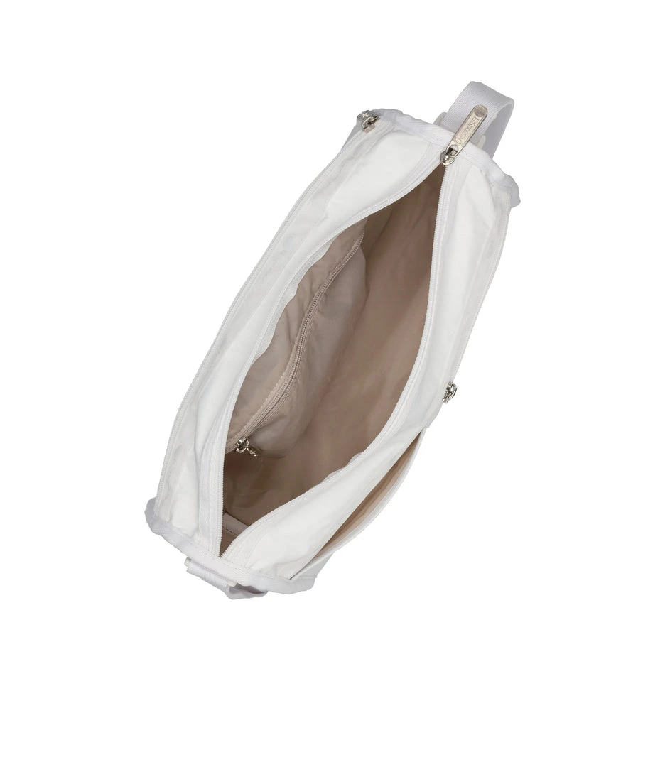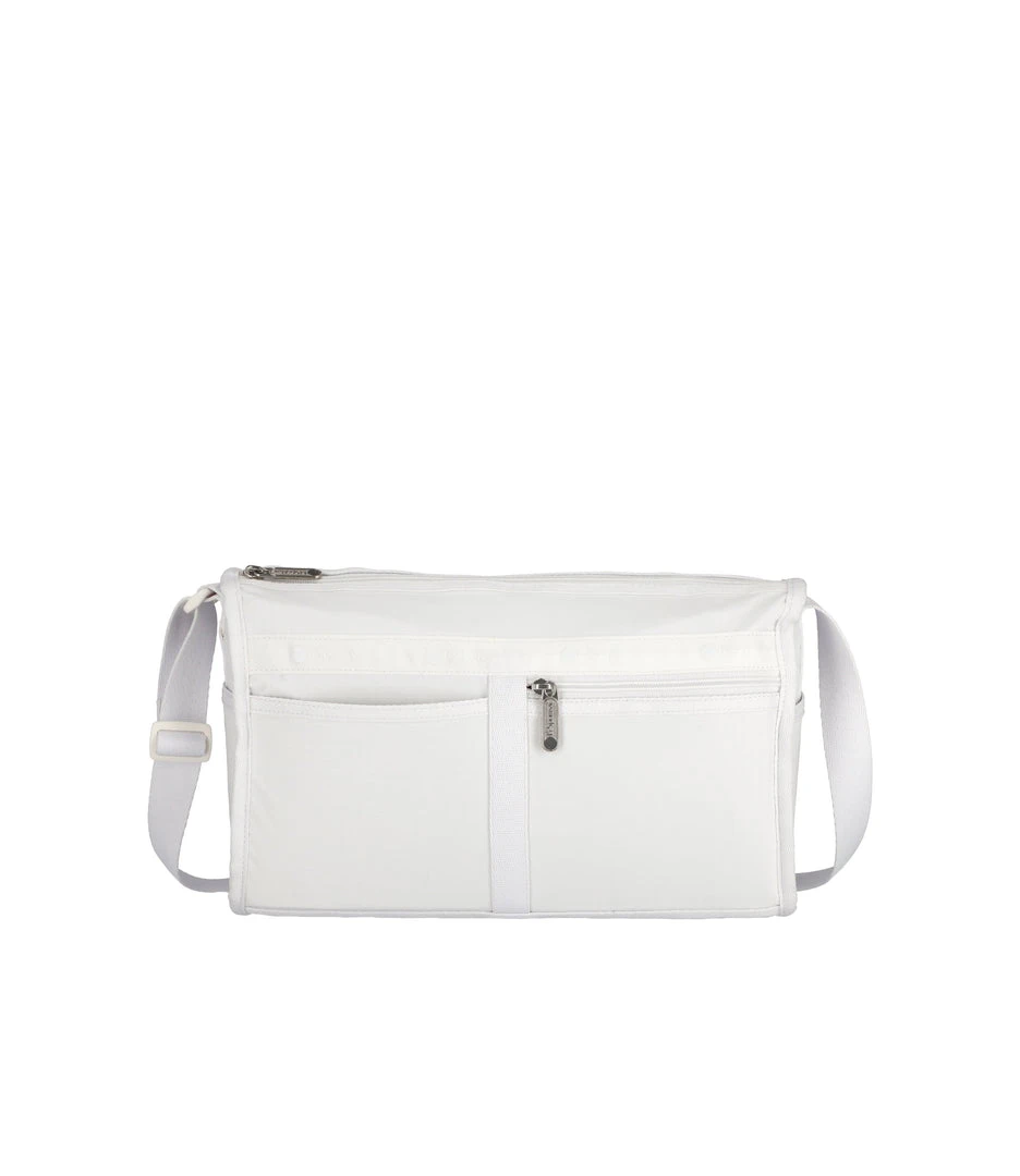 Zipped main closure, Exterior front open pocket, Exterior front pocket with zipped closure, Exterior back pocket with zipped closure, Two exterior open side pockets, Adjustable shoulder strap (Max. 52in/132cm), Interior pocket with zipped closure, Includes matching pouch with zipped closure