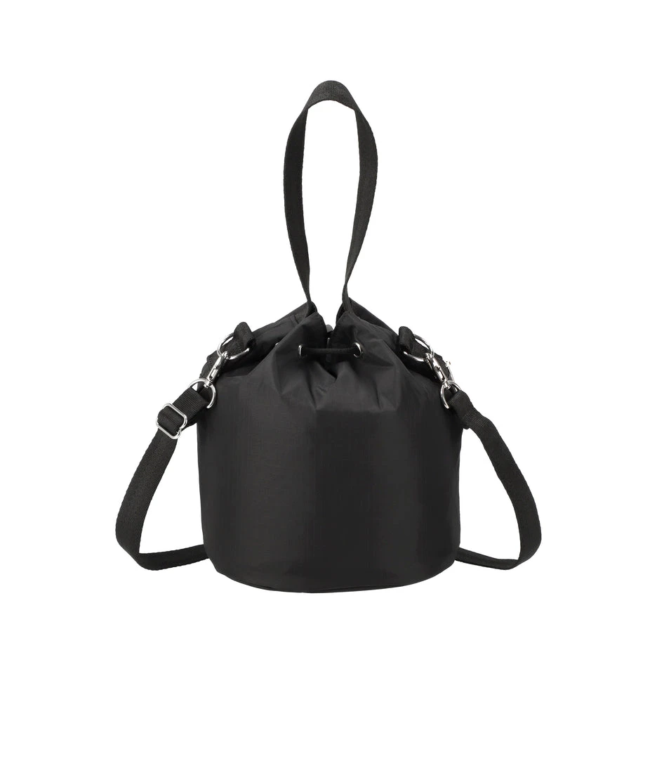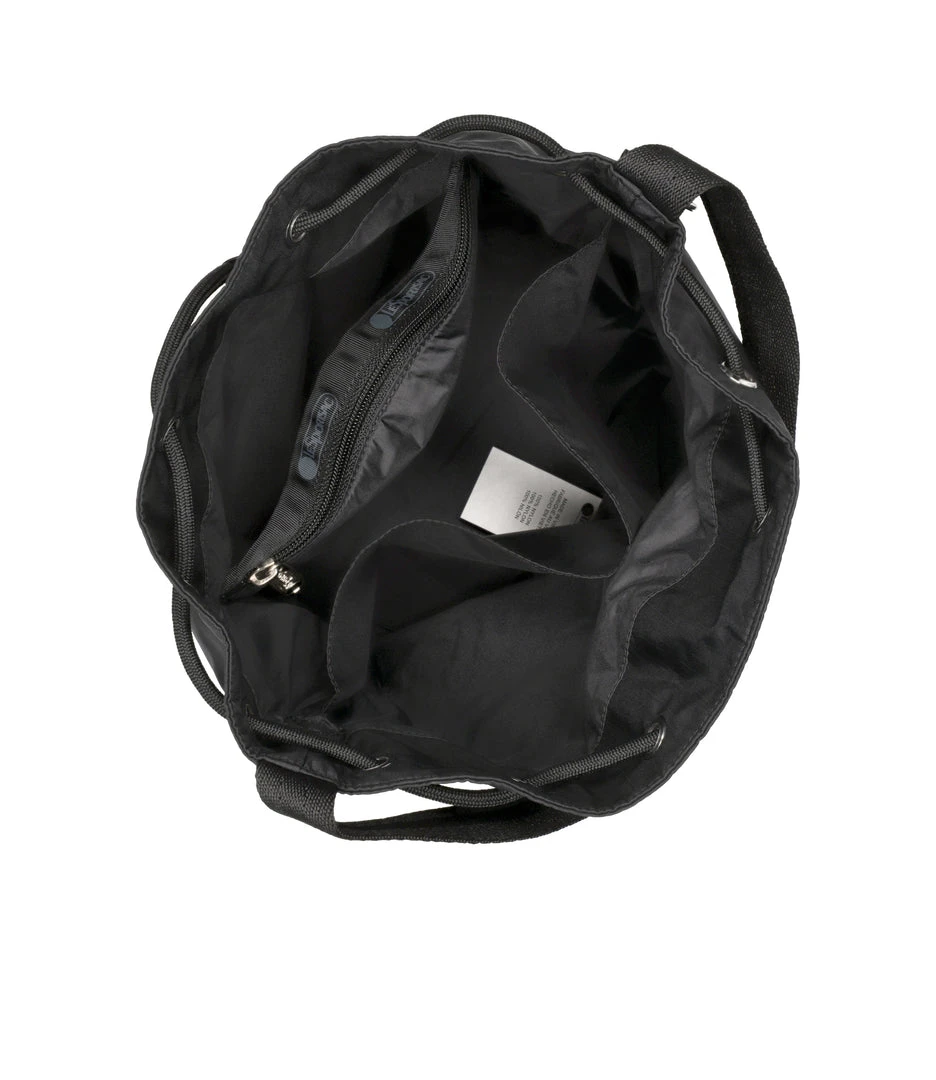 Drawstring main closure, Exterior back zip pocket, Two interior front wall open pockets, Interior back wall zip/open combination pocket, 1in/2.5cm wide top handle(Drop: 8 in/20.5 cm, Length: 16.34 in/41.5 cm), 1in/2.5cm wide adjustable/detachable shoulder strap (Max length: 48 in/122 cm, Min length: 25.2 in/64cm)