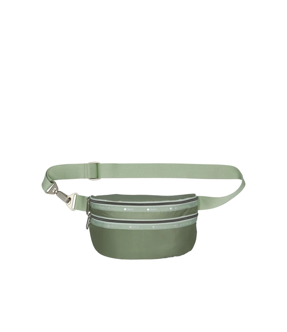Zipped main closure, Exterior front zip pocket, 1.5in/3.8cm wide adjustable waist belt (Max length including body and buckle: 48.4 inc/123 cm, Min length: 32.8 in/83.5 cm)