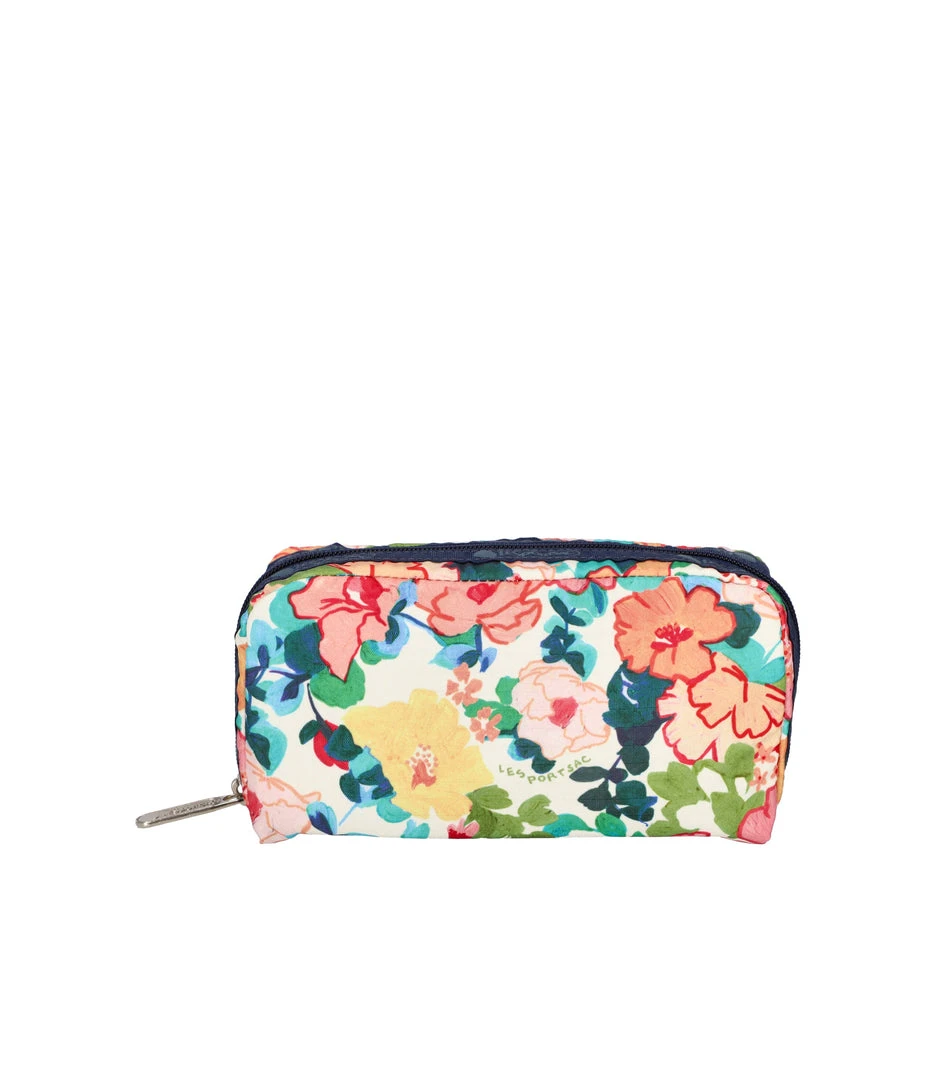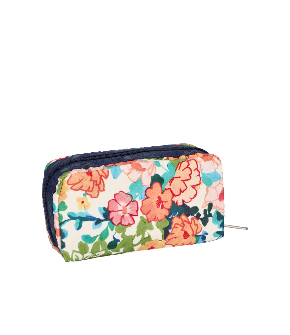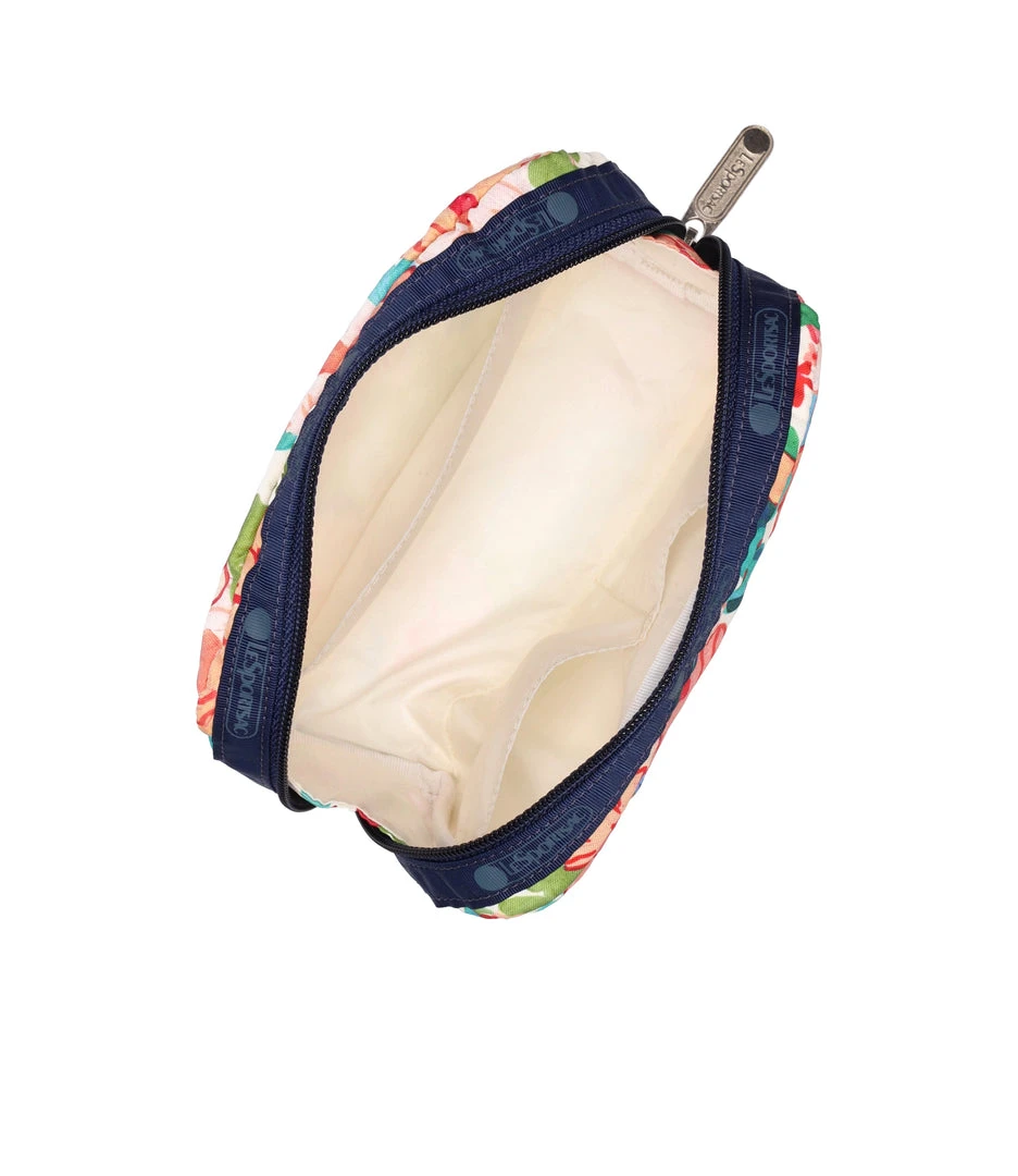 Zipped main closure, Interior back wall open pocket, Two interior front wall open pockets
