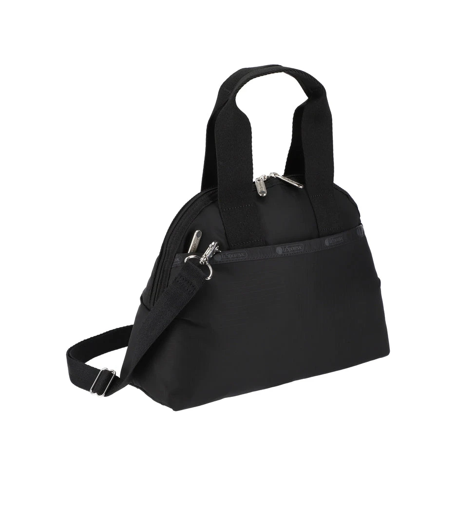 Zip main closure, Exterior front and back pockets with zip closures, 1.5 inch (3.8cm) wide top handles (Length: 13.8 in/35 cm ), 1 in (2.5cm) wide adjustable/detachable shoulder strap (Max length: 50.8 in/129 cm), Two interior front wall open pleated pockets, Interior back wall combination zip/open pocket