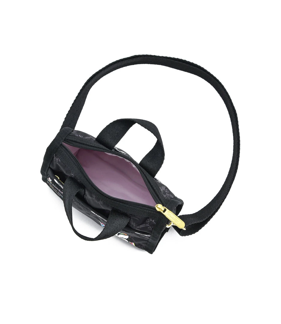 Zip top main closure, Exterior front pocket with zip closure, Adjustable/detachable crossbody strap (Max. 53in/134.62 cm) with gold-tone metal hardware, 1.5in (3.81cm) Top handle drop, Includes a detachable woven plush Palette head charm on 1in (2.5cm) long gold-tone metal chain with ring clip