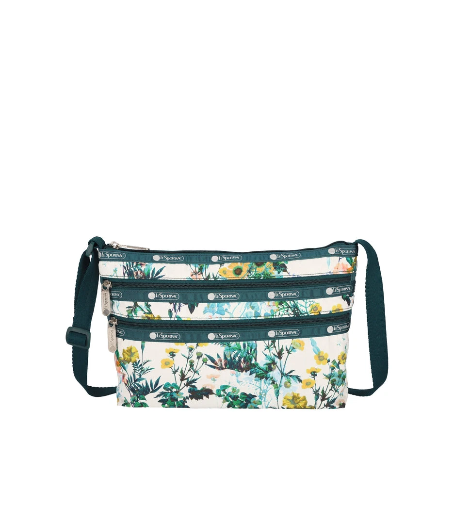 Zip main closure, Two exterior front pockets with zip closures, Adjustable crossbody strap (Max. 50.25in / 127.64cm), Two interior back wall open pockets