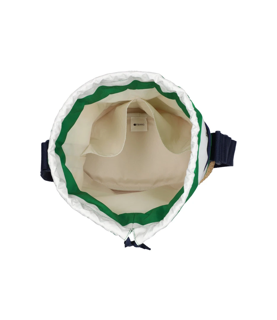 Drawstring main closure, Two interior back wall open pockets, 1.5in/3.8cm wide adjustable strap (Shortest Length: 27.55 in/ 70 cm, Longest Length: 49.6 inch/126cm)