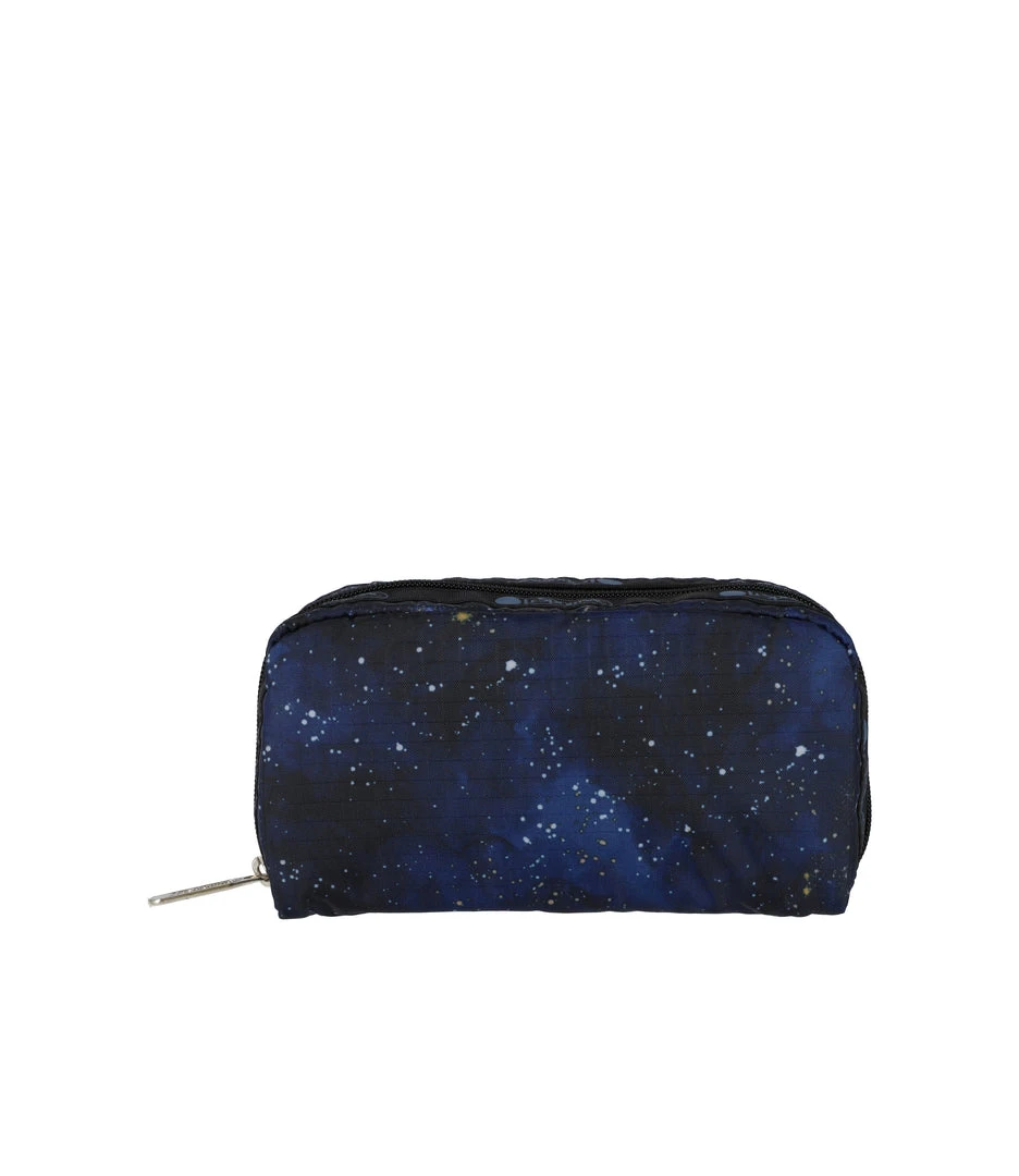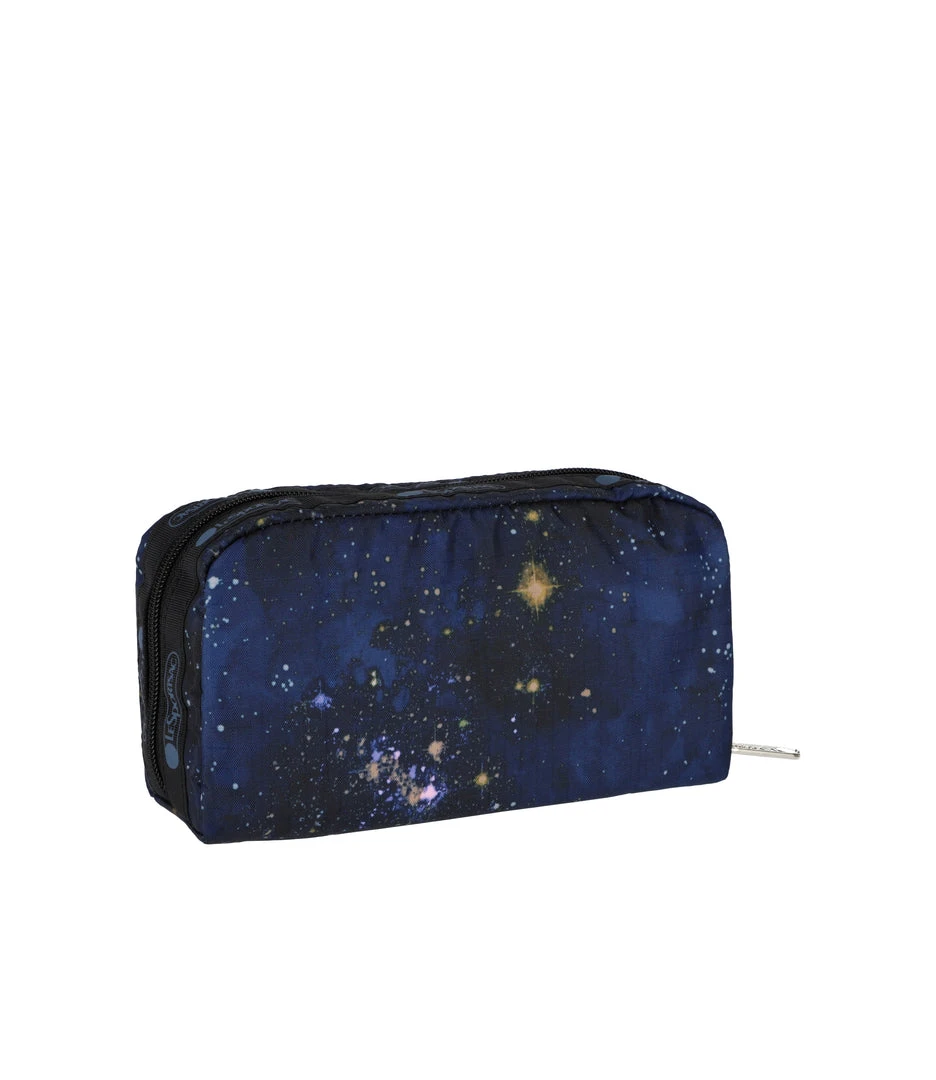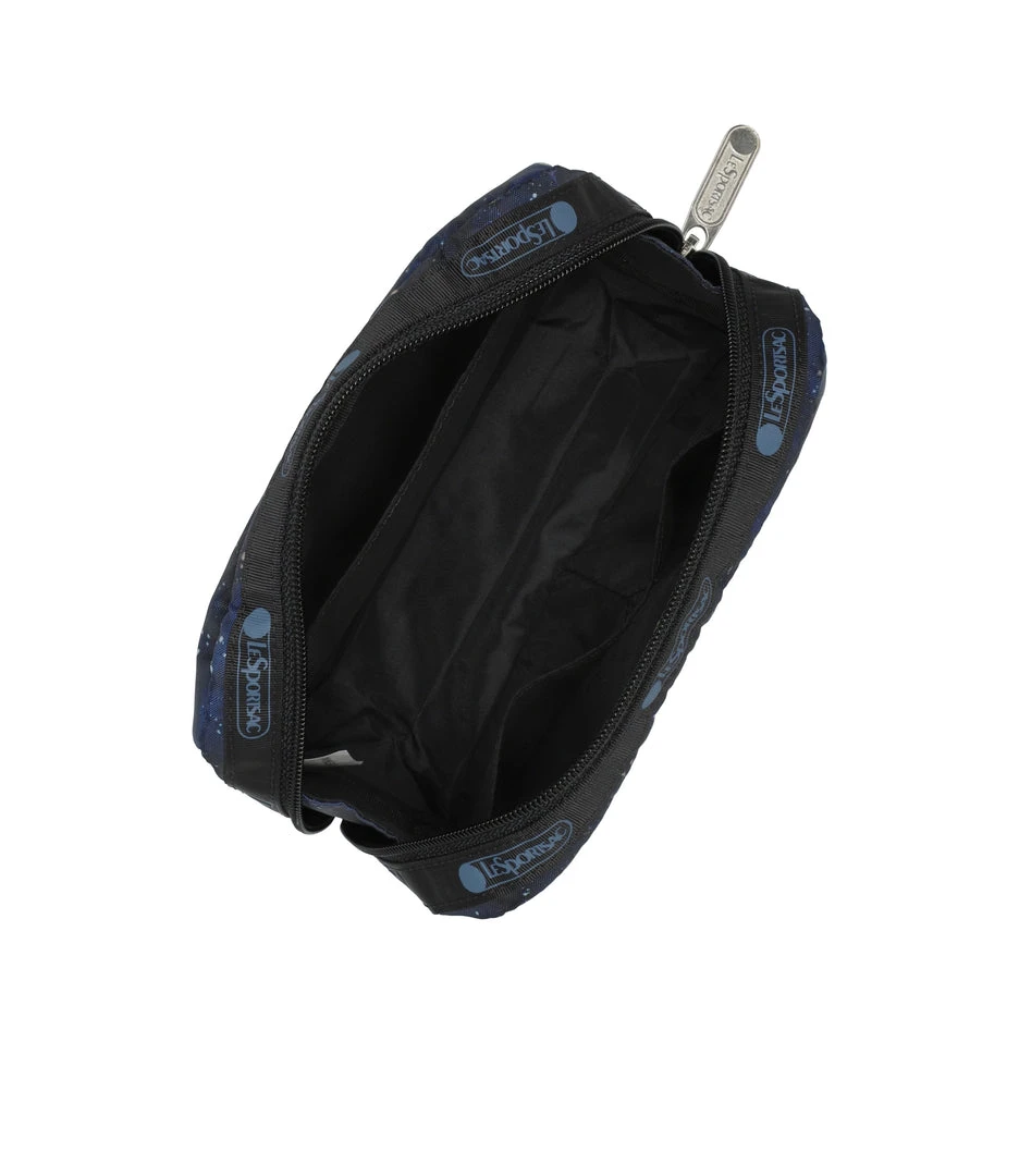 Zipped main closure, Interior back wall open pocket, Two interior front wall open pockets