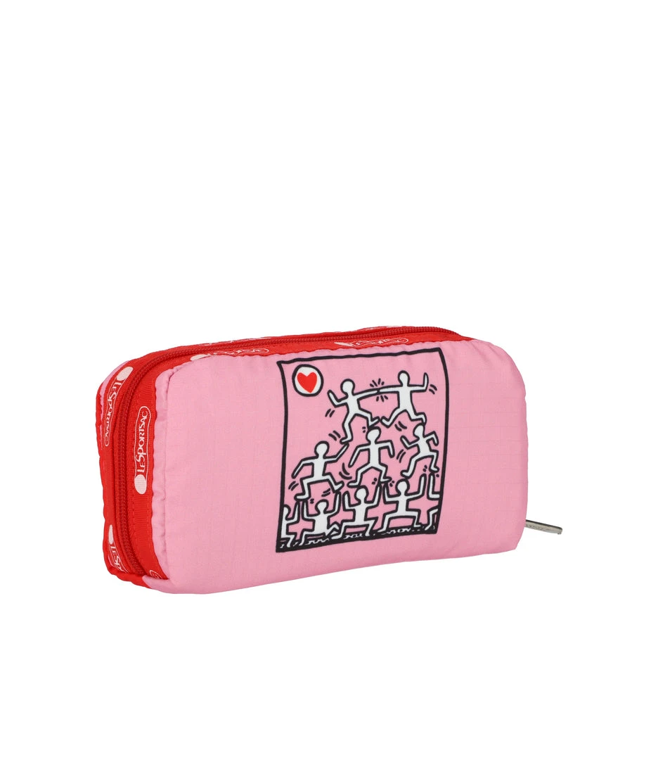 Zipped main closure, Interior back wall open pocket, Two interior front wall open pockets