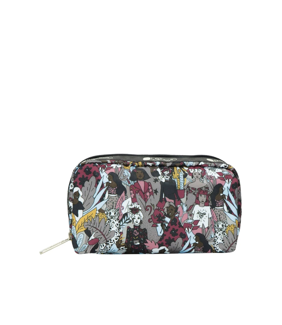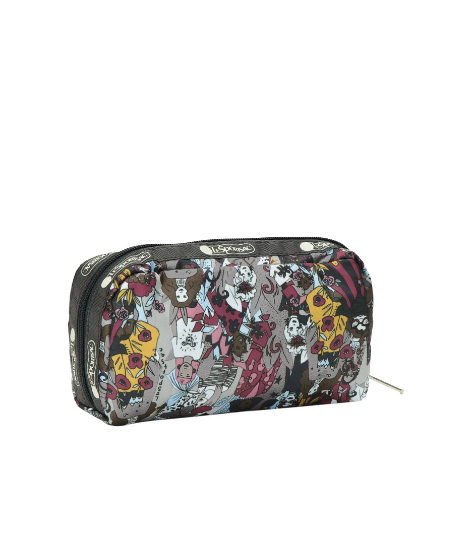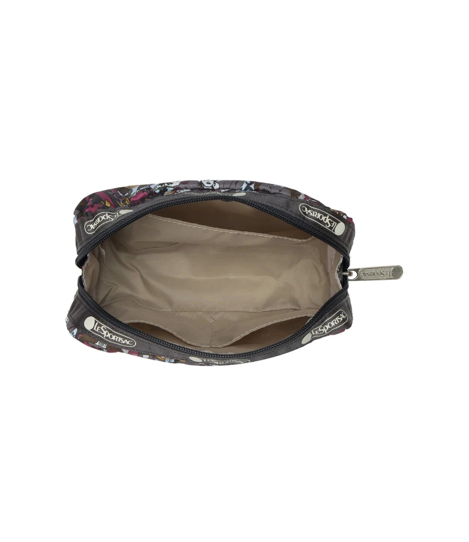 Zipped main closure, Interior back wall open pocket, Two interior front wall open pockets