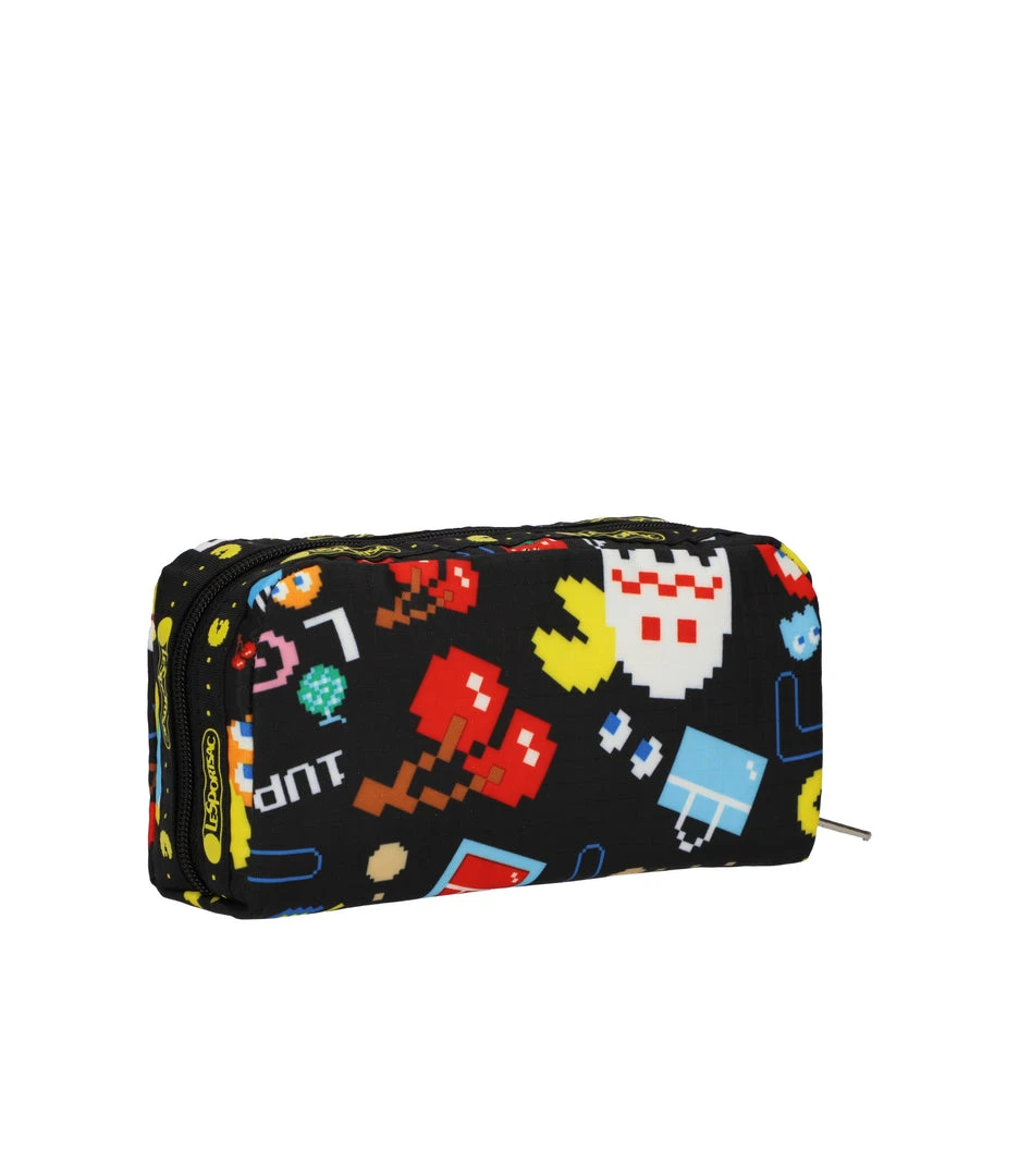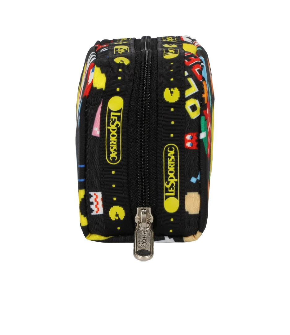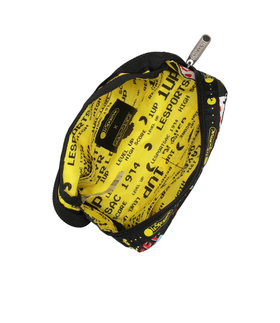 Zipped main closure, Interior back wall open pocket, Two interior front wall open pockets