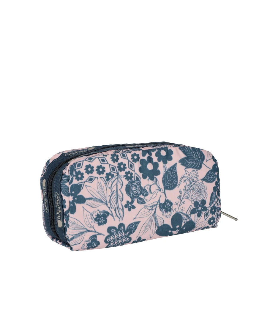 Zipped main closure, Interior back wall open pocket, Two interior front wall open pockets